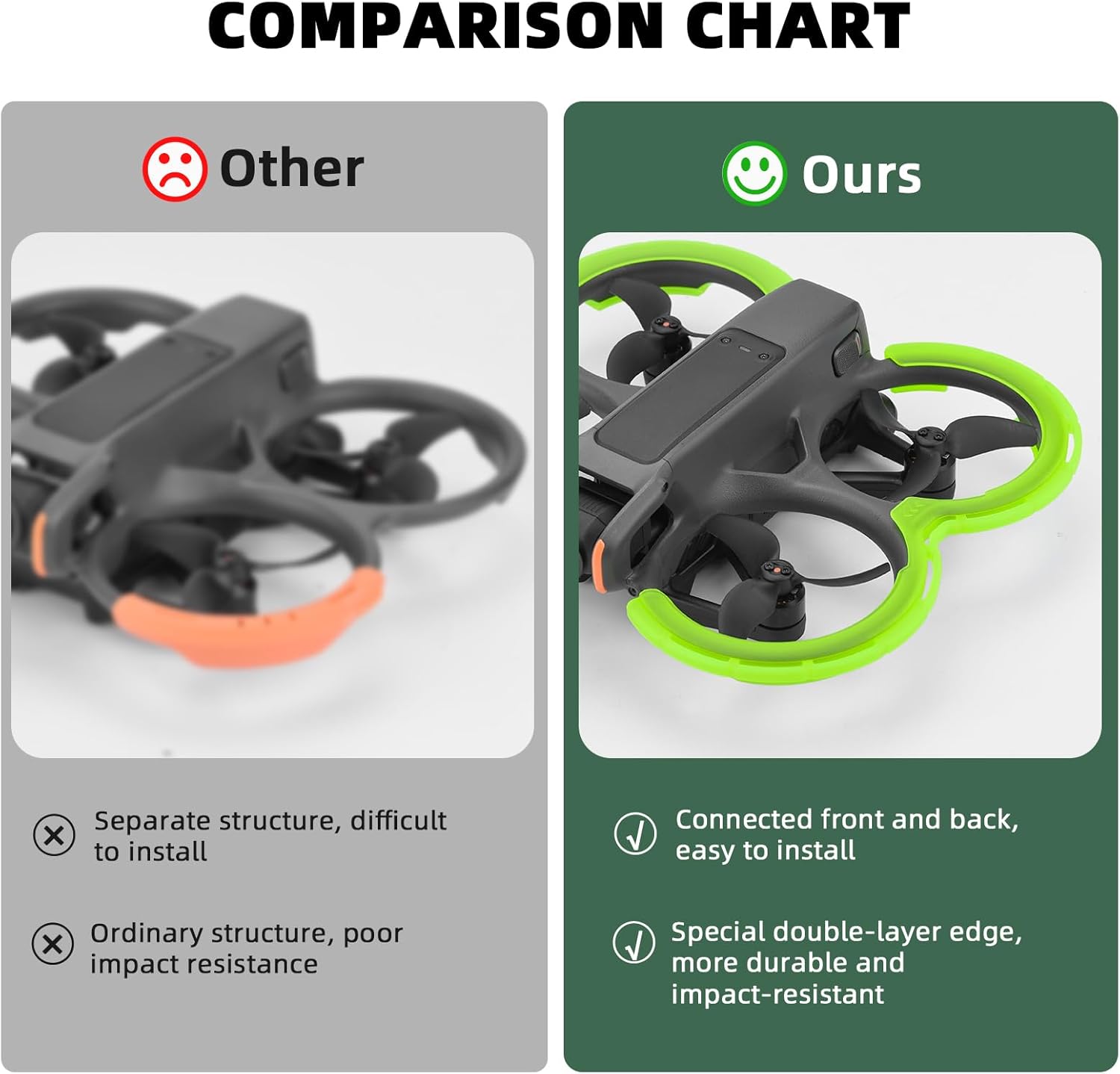 • МОНТАЖ БЕЗ ИНСТРУМЕНТИ В ЕДНА СТЪПКА - Инсталирайте нашите предпазители за перки на вашия Avata 2" за секунди. Тези предпазители се доставят с ясни инструкции за монтаж и се закрепват безпроблемно, без да надраскат корпуса на дрона или да повлияят на капачката на обектива и други компоненти.