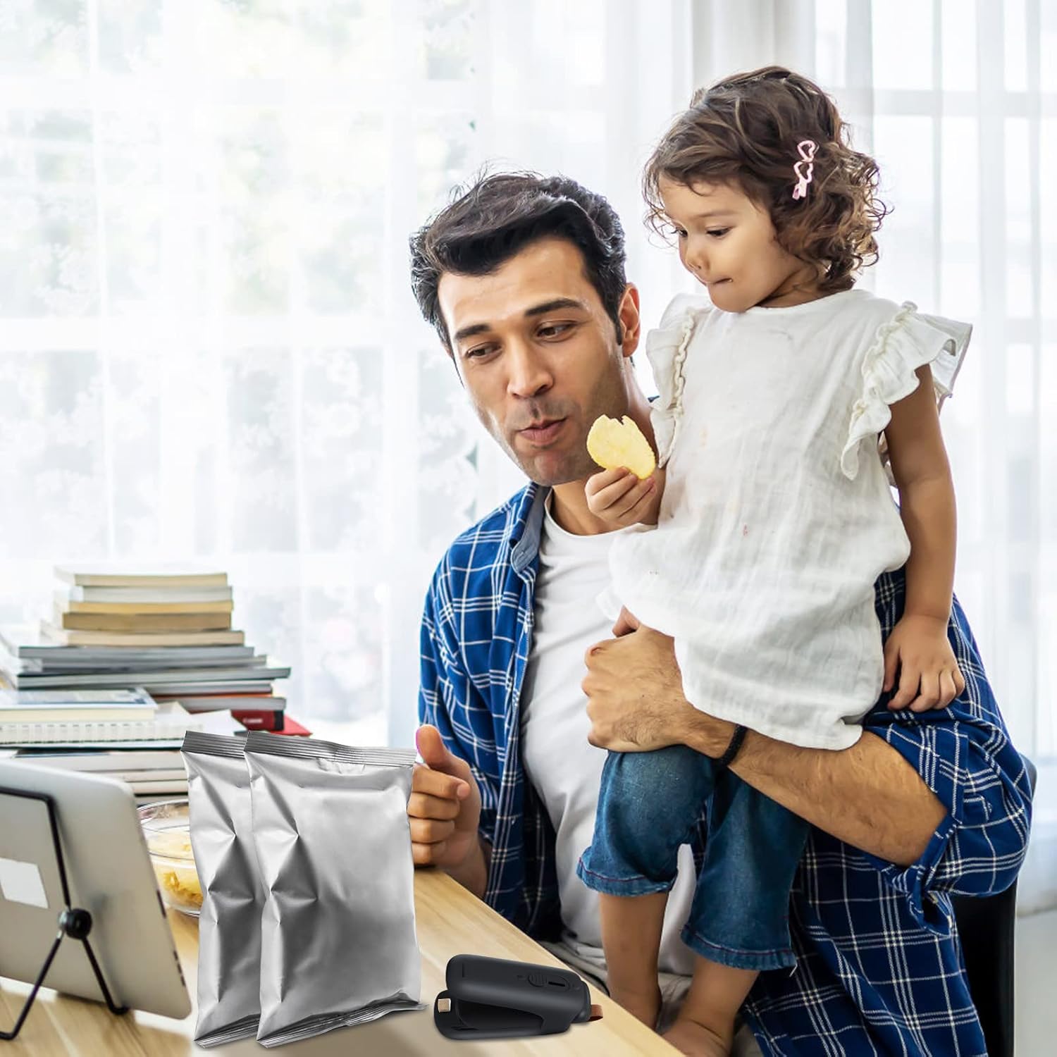 2 в 1 запечатващ и режещ уред: Той не е само запечатващ уред за торбички, но и режещ уред. Преносим и компактен: Малкият му размер го прави по-лесен за носене и съхранение. Лесен за употреба: Поставете торбата, която ще се запечатва, в средата и я издърпайте бавно и с постоянна скорост. Широко приложение: Подходящ за повечето пластмасови торбички с дебелина ≦0,3 мм, идеален за дома, кухнята, офиса, училището и пътуването и др.