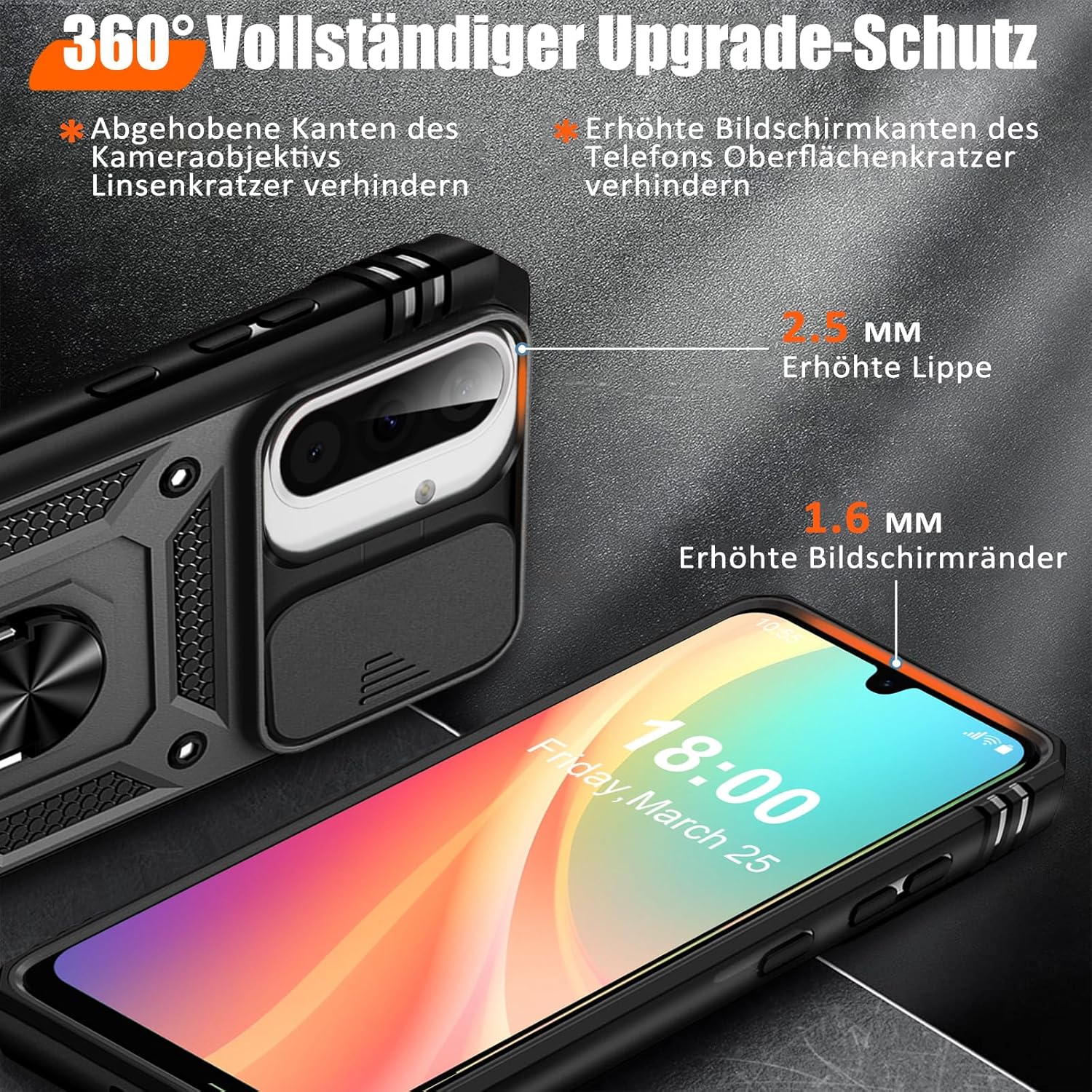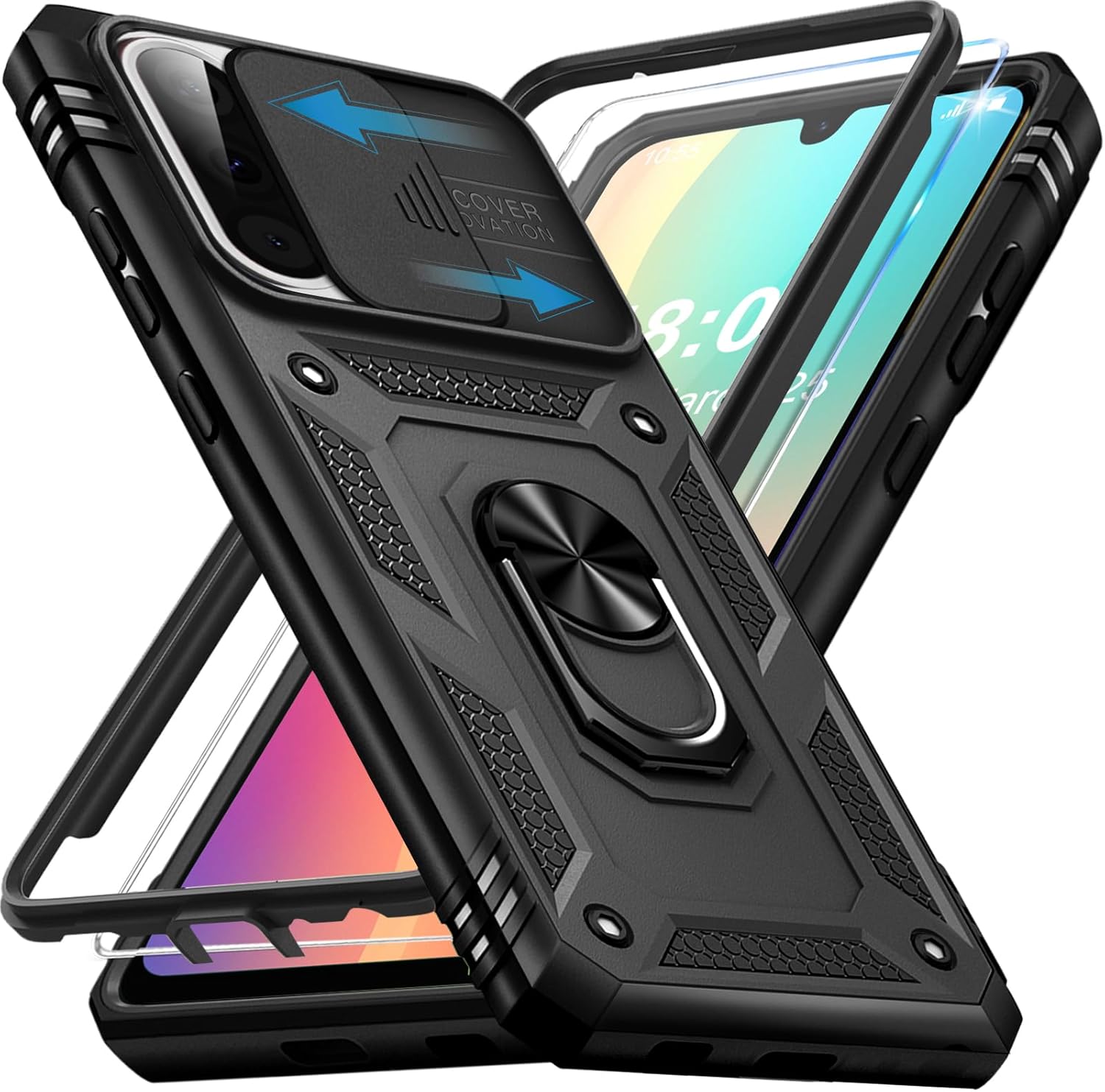 Брониран калъф Giyer за Samsung Galaxy A26 5G с протектор за екрана, калъф за мобилен телефон A26 5G със защита на камерата, 360° метална пръстеновидна стойка, удароустойчив защитен калъф за Samsung A26 5G