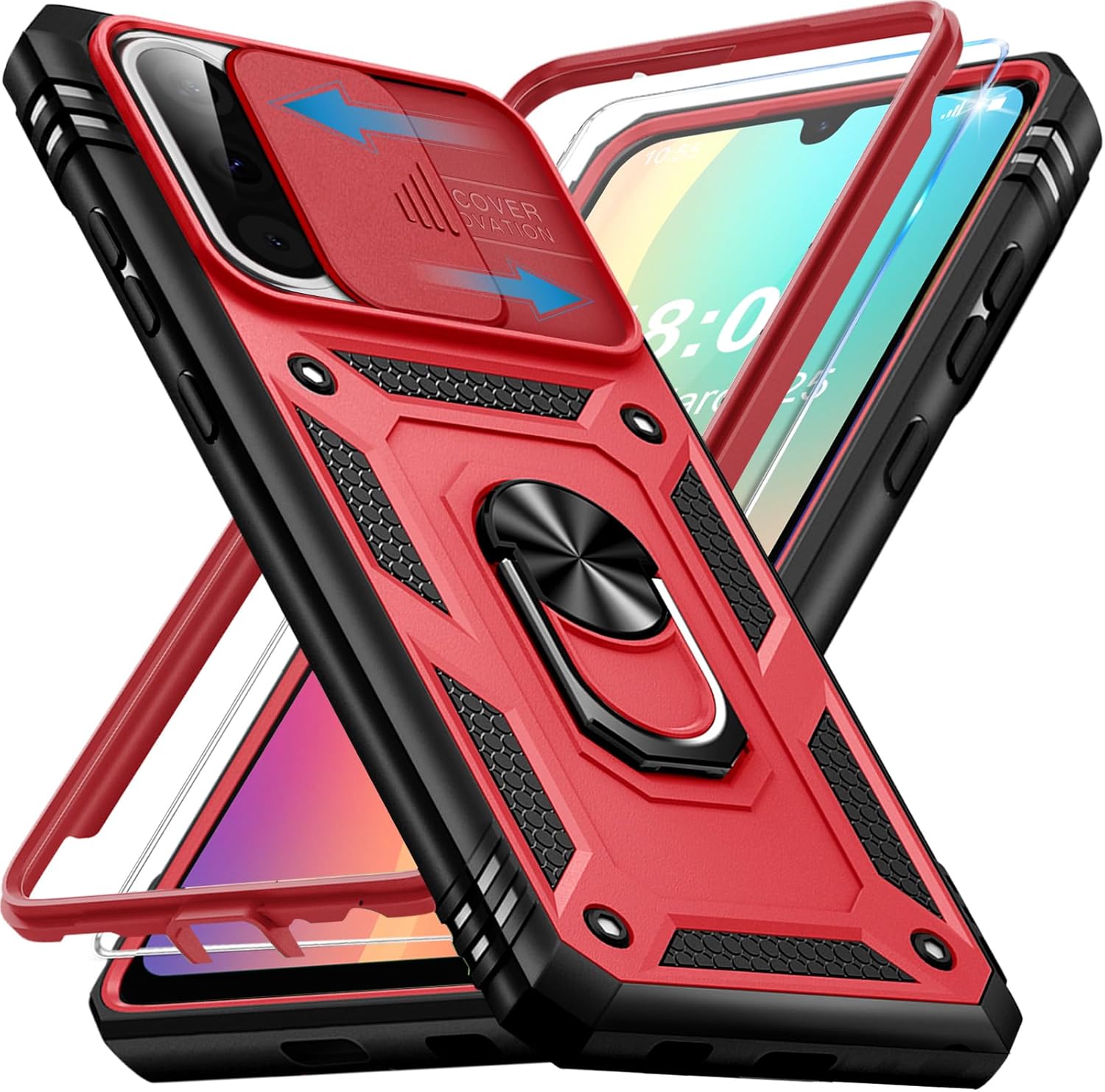 Брониран калъф Giyer за Samsung Galaxy A26 5G с протектор за екрана, калъф за мобилен телефон A26 5G със защита на камерата, 360° метална пръстеновидна стойка, удароустойчив защитен калъф за Samsung A26 5G