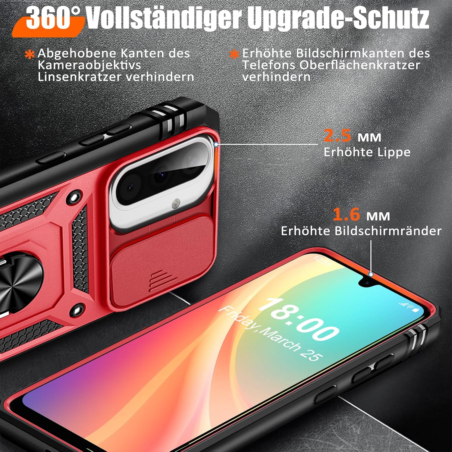 • Защита от военно ниво: калъфът за Galaxy A53 5G използва уникален TPU с ръбове в комбинация с вградени PC 2-в-1 затваряния, за да предпази телефона ви от падания, драскотини и удари. Защитата от военно ниво с технология с въздушна възглавница осигурява цялостна защита за вашето оборудване. Дизайн с плъзгач на обектива: Повдигната рамка за защита на камерата. Капачката покрива обектива и го предпазва от прах и драскотини.