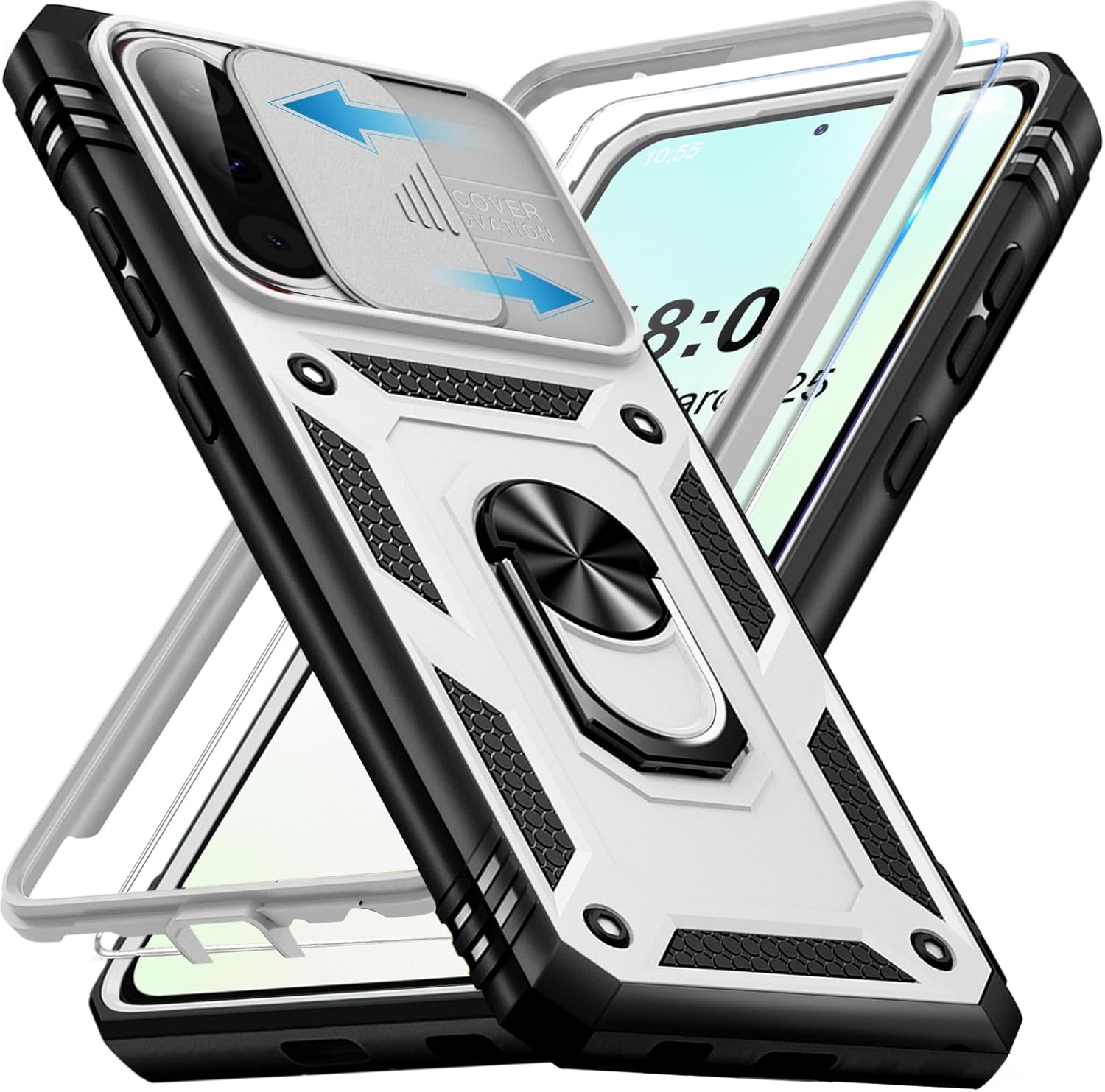 Брониран калъф Giyer за Samsung Galaxy A36 5G с протектор за екрана, калъф за мобилен телефон A36 5G със защита на камерата, 360° метална пръстеновидна стойка, удароустойчив защитен калъф за Samsung A36 5G