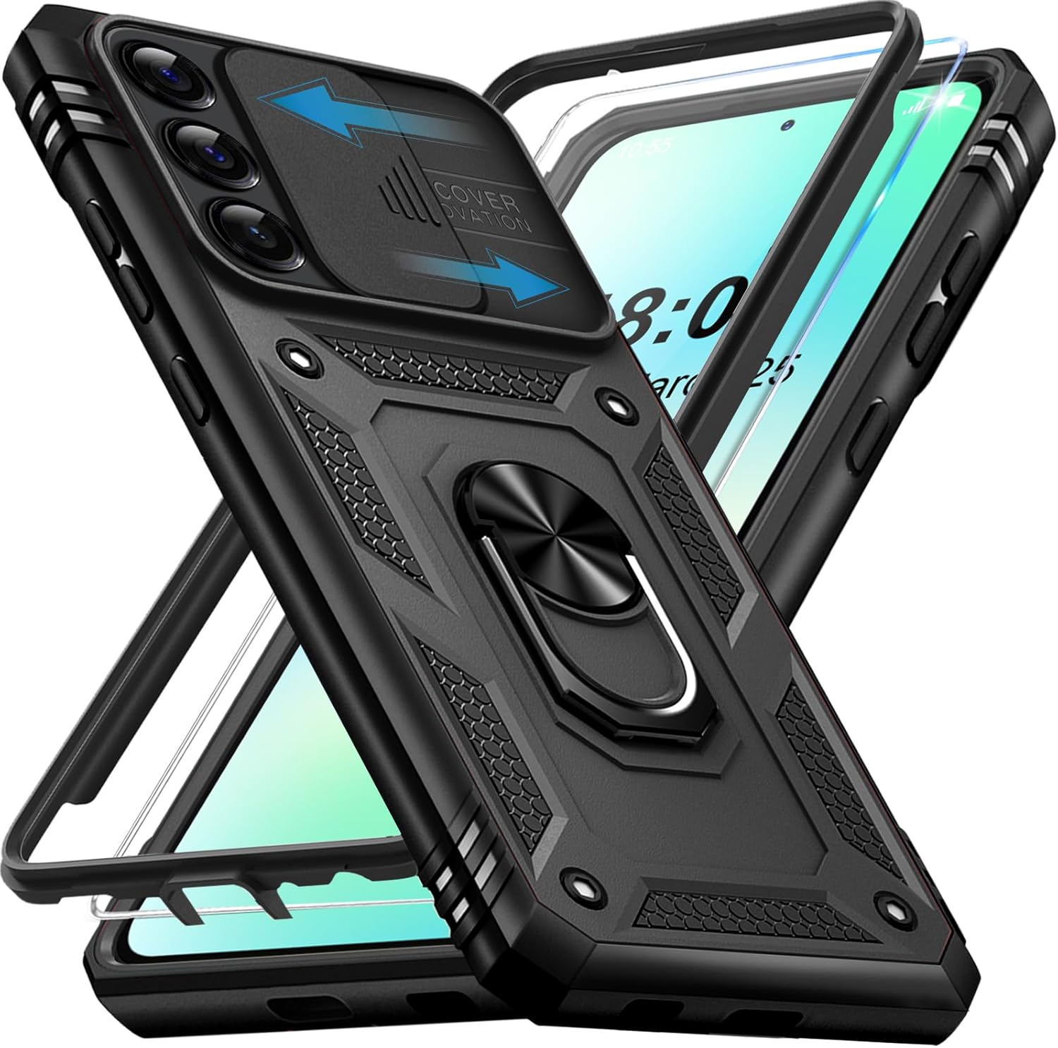 Брониран калъф Giyer за Samsung Galaxy S24 FE с протектор за екрана, калъф за мобилен телефон S24 FE 5G със защита на камерата, 360° метална пръстеновидна стойка, удароустойчив защитен калъф за Samsung S24 FE