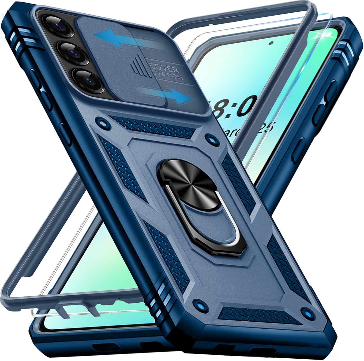 Брониран калъф Giyer за Samsung Galaxy S24 FE с протектор за екрана, калъф за мобилен телефон S24 FE 5G със защита на камерата, 360° метална пръстеновидна стойка, удароустойчив защитен калъф за Samsung S24 FE