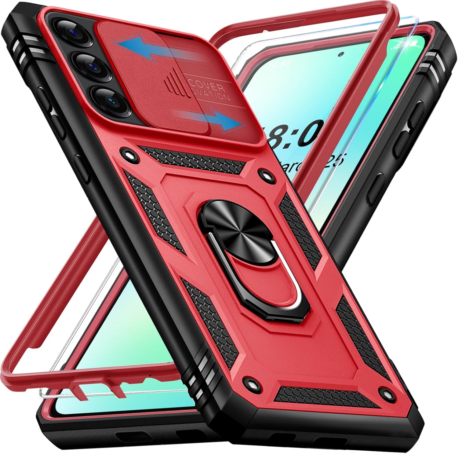 Брониран калъф Giyer за Samsung Galaxy S24 FE с протектор за екрана, калъф за мобилен телефон S24 FE 5G със защита на камерата, 360° метална пръстеновидна стойка, удароустойчив защитен калъф за Samsung S24 FE
