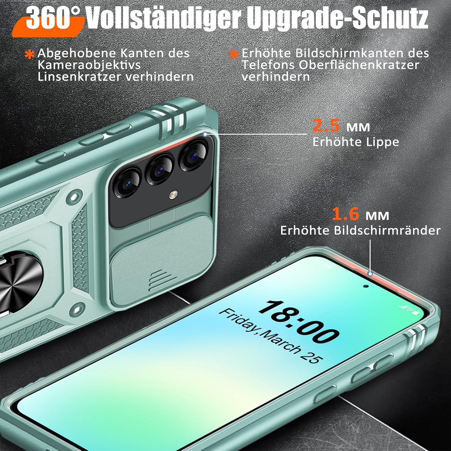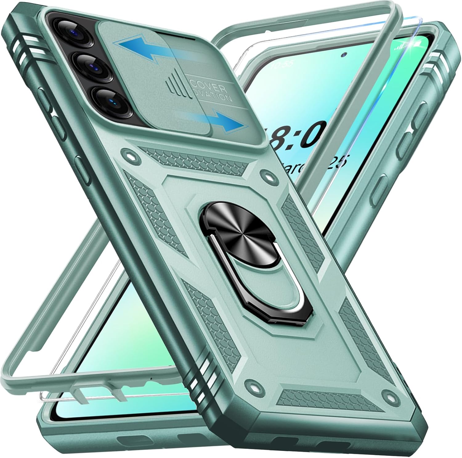 Брониран калъф Giyer за Samsung Galaxy S24 FE с протектор за екрана, калъф за мобилен телефон S24 FE 5G със защита на камерата, 360° метална пръстеновидна стойка, удароустойчив защитен калъф за Samsung S24 FE