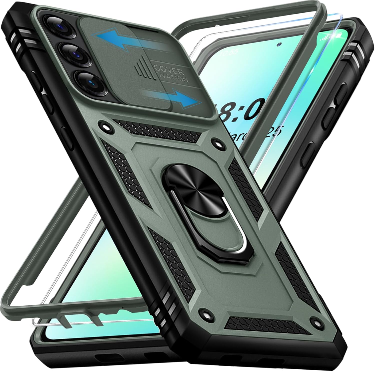 Брониран калъф Giyer за Samsung Galaxy S24 FE с протектор за екрана, калъф за мобилен телефон S24 FE 5G със защита на камерата, 360° метална пръстеновидна стойка, удароустойчив защитен калъф за Samsung S24 FE