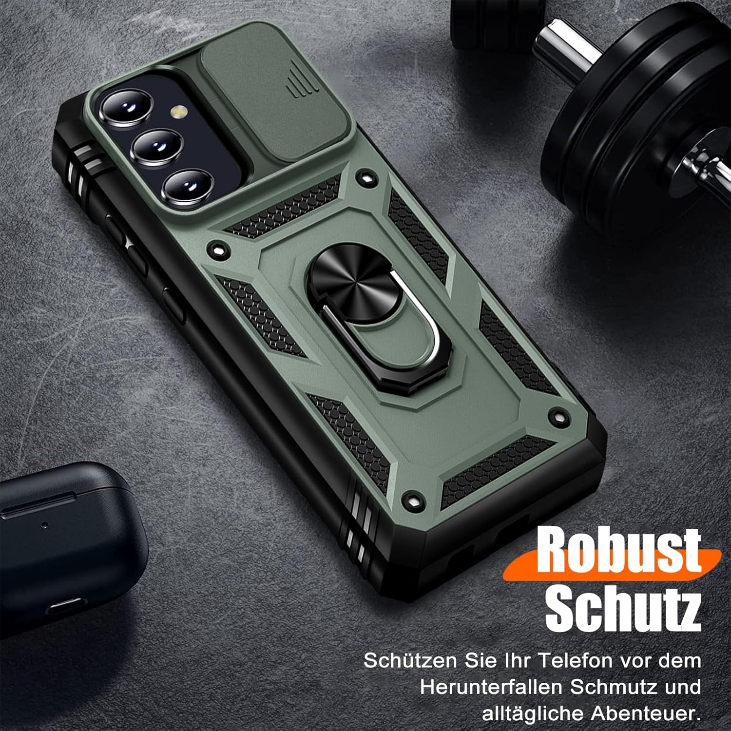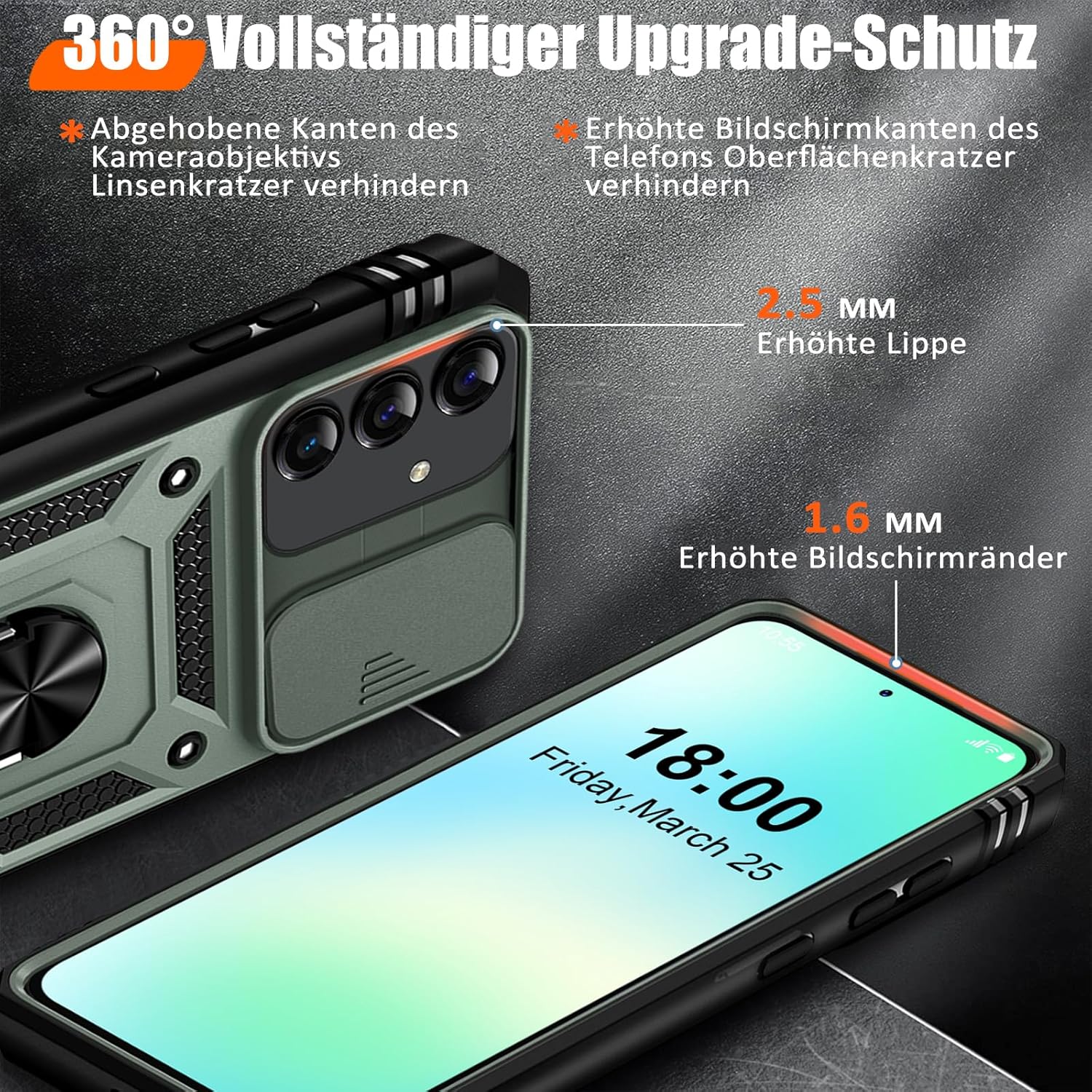 • Защита от военен клас: калъфът за Galaxy S25 използва уникален TPU с ръбове в комбинация с вградени PC 2-в-1 затваряния, за да предпази телефона ви от падания, драскотини и удари. Защитата от военен клас с технология с въздушна възглавница осигурява цялостна защита за вашето оборудване. Дизайн с плъзгач на обектива: Повдигната рамка за защита на камерата. Капачката покрива обектива и го предпазва от прах и драскотини.