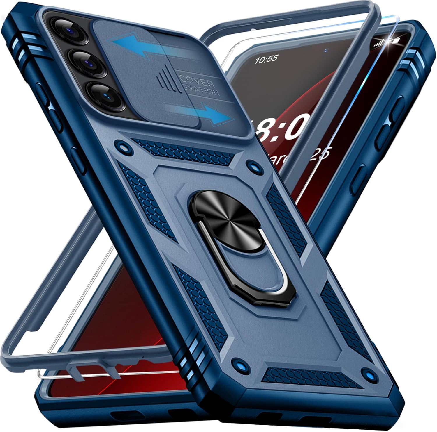 Брониран калъф Giyer за Samsung Galaxy S25 FE с протектор за екрана, калъф за мобилен телефон S25 FE със защита на камерата, 360° метална пръстеновидна стойка, удароустойчив защитен калъф за Samsung S25 FE 5G