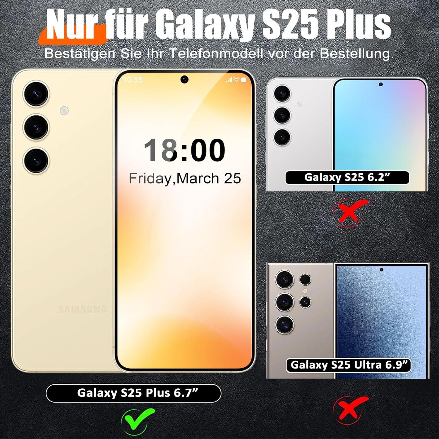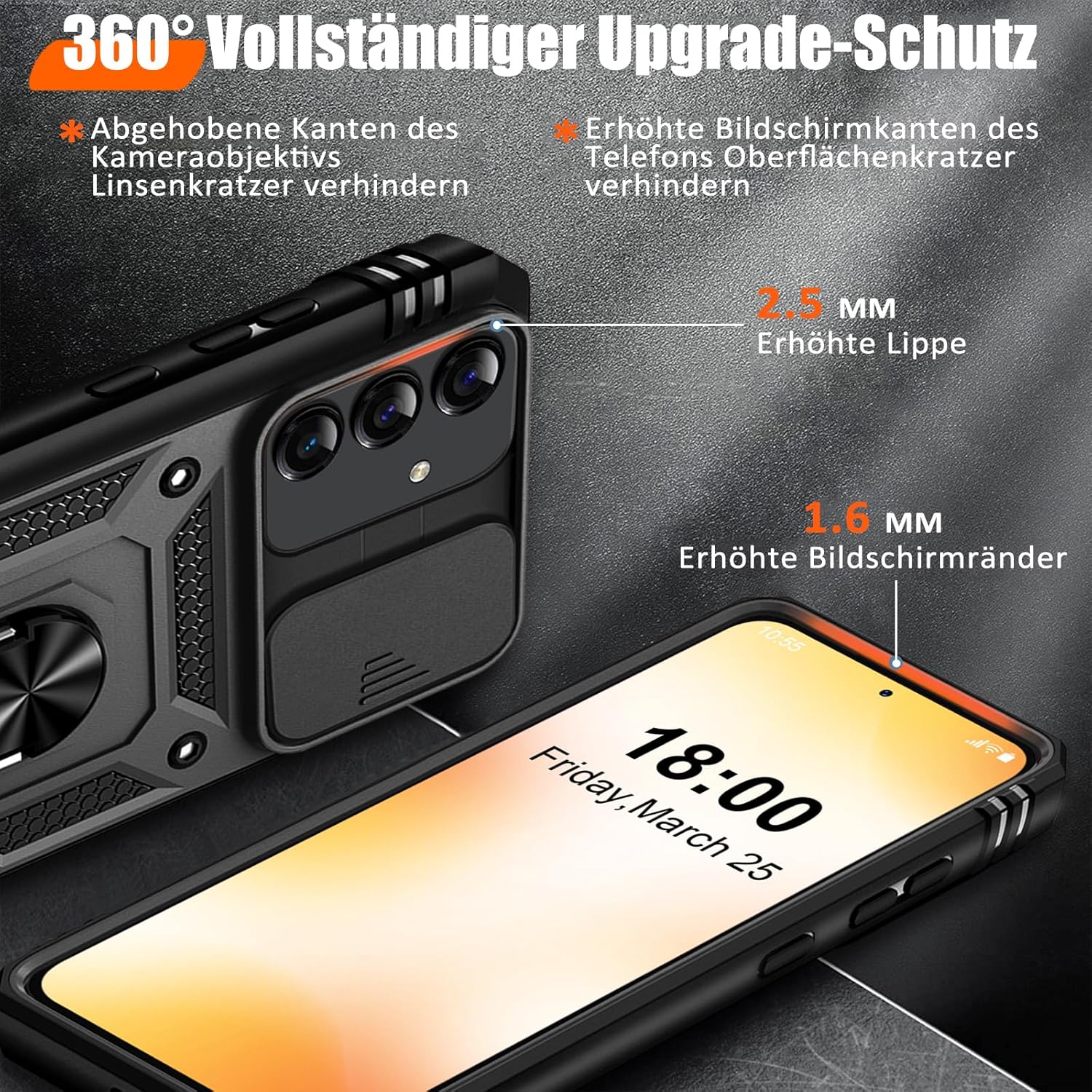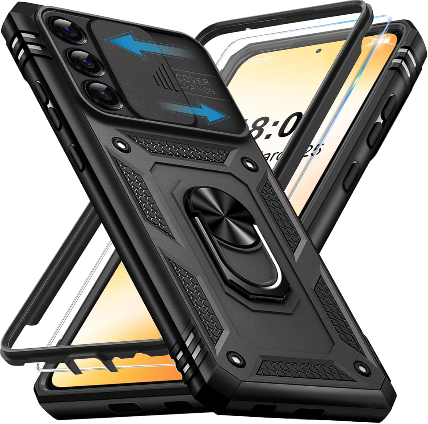 Брониран калъф Giyer за Samsung Galaxy S25 Plus с протектор за екрана, калъф за мобилен телефон S25 Plus със защита на камерата, 360° метална пръстеновидна стойка, защитен калъф за Samsung S25 Plus