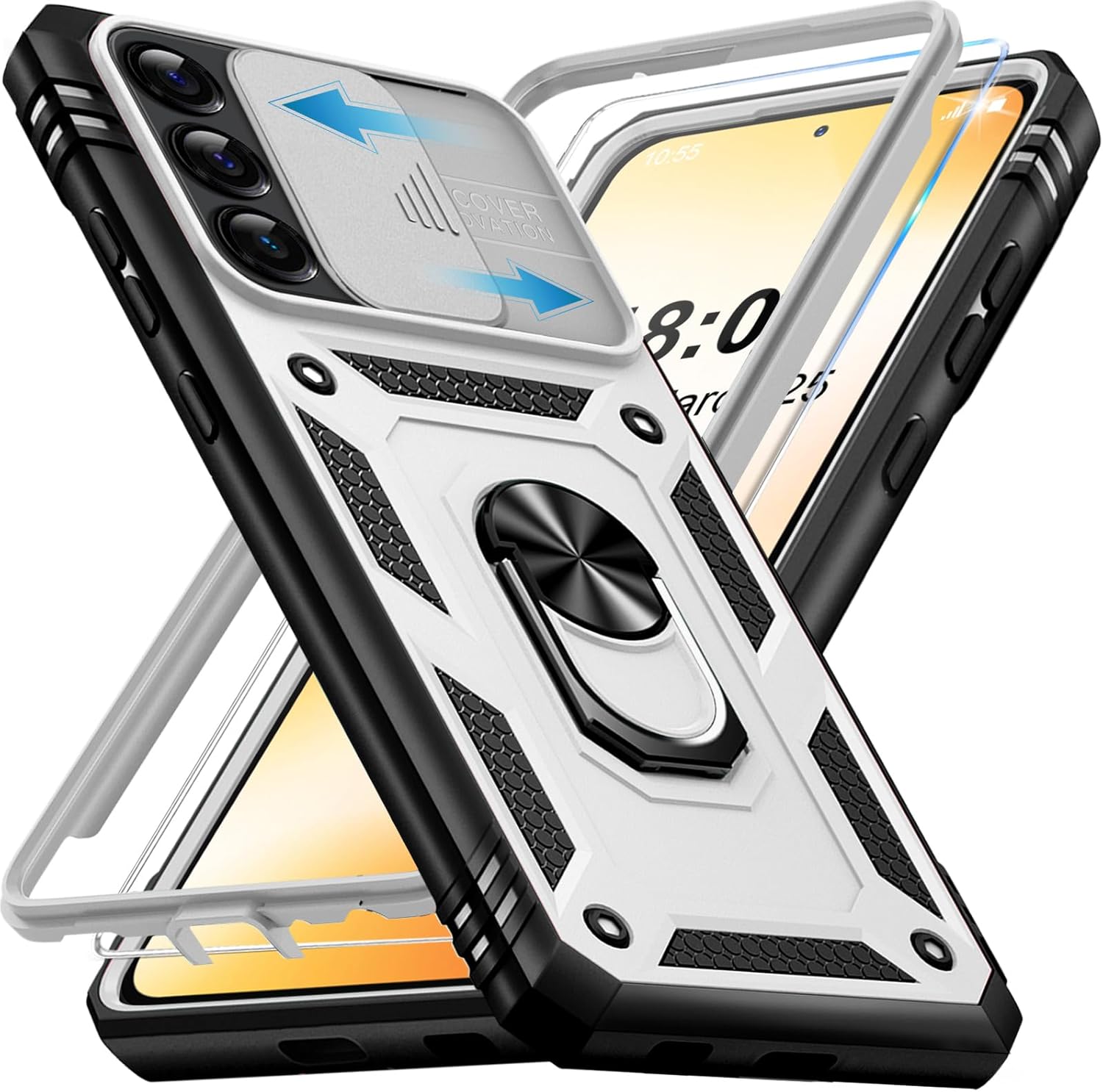Брониран калъф Giyer за Samsung Galaxy S25 Plus с протектор за екрана, калъф за мобилен телефон S25 Plus със защита на камерата 360° метална пръстеновидна стойка, защитен калъф за Samsung S25 Plus