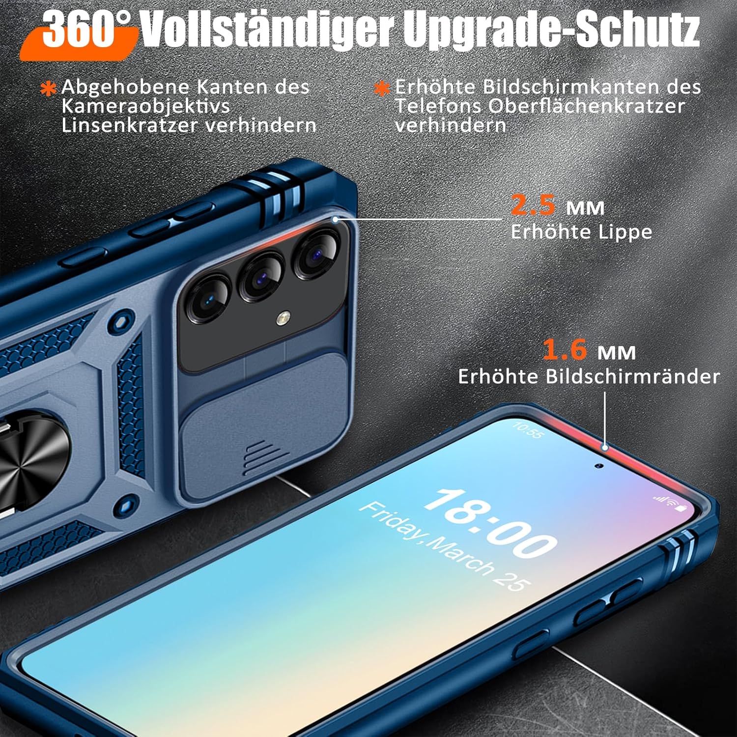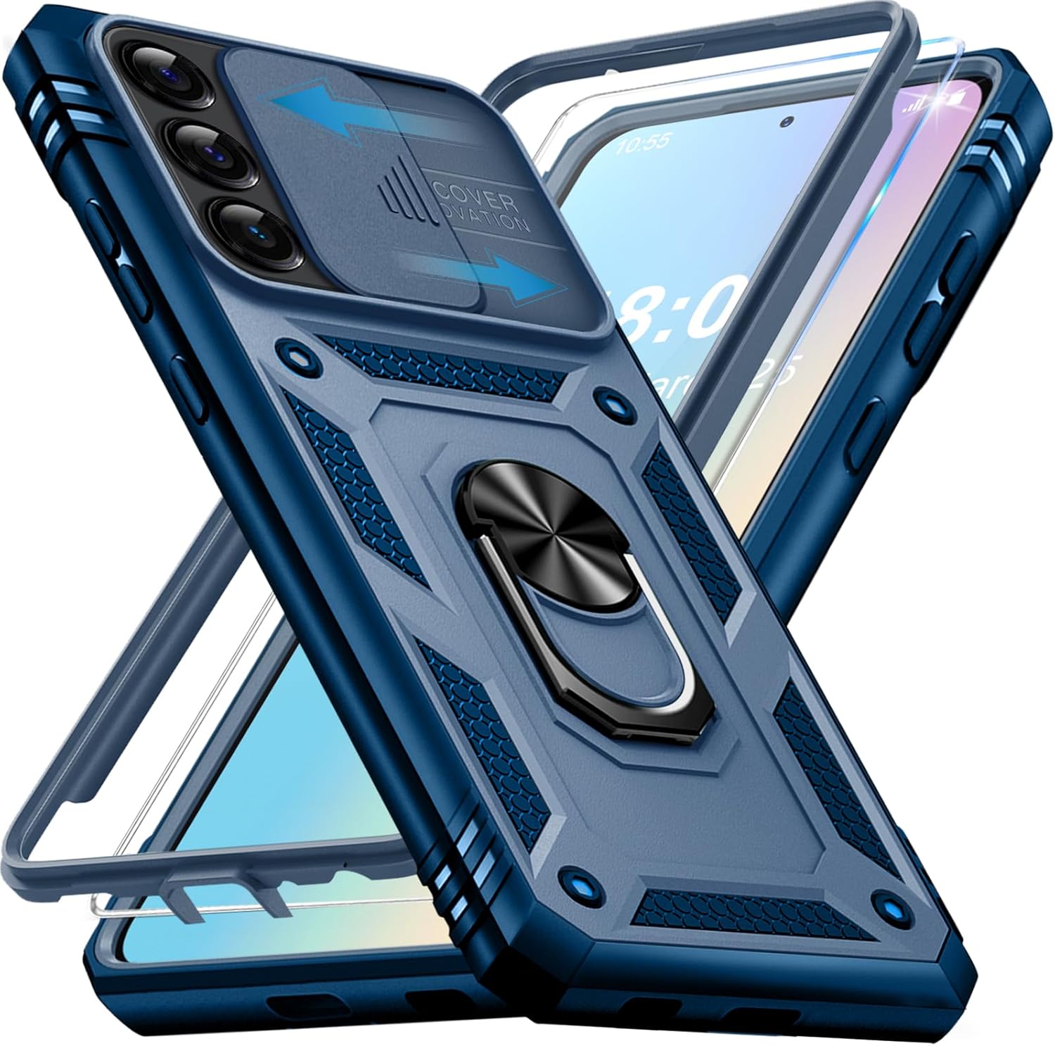 Брониран калъф Giyer за Samsung Galaxy S25 с протектор за екрана, калъф за мобилен телефон S25 със защита на камерата, 360° метална пръстеновидна стойка, удароустойчив защитен калъф за Samsung S25 5G