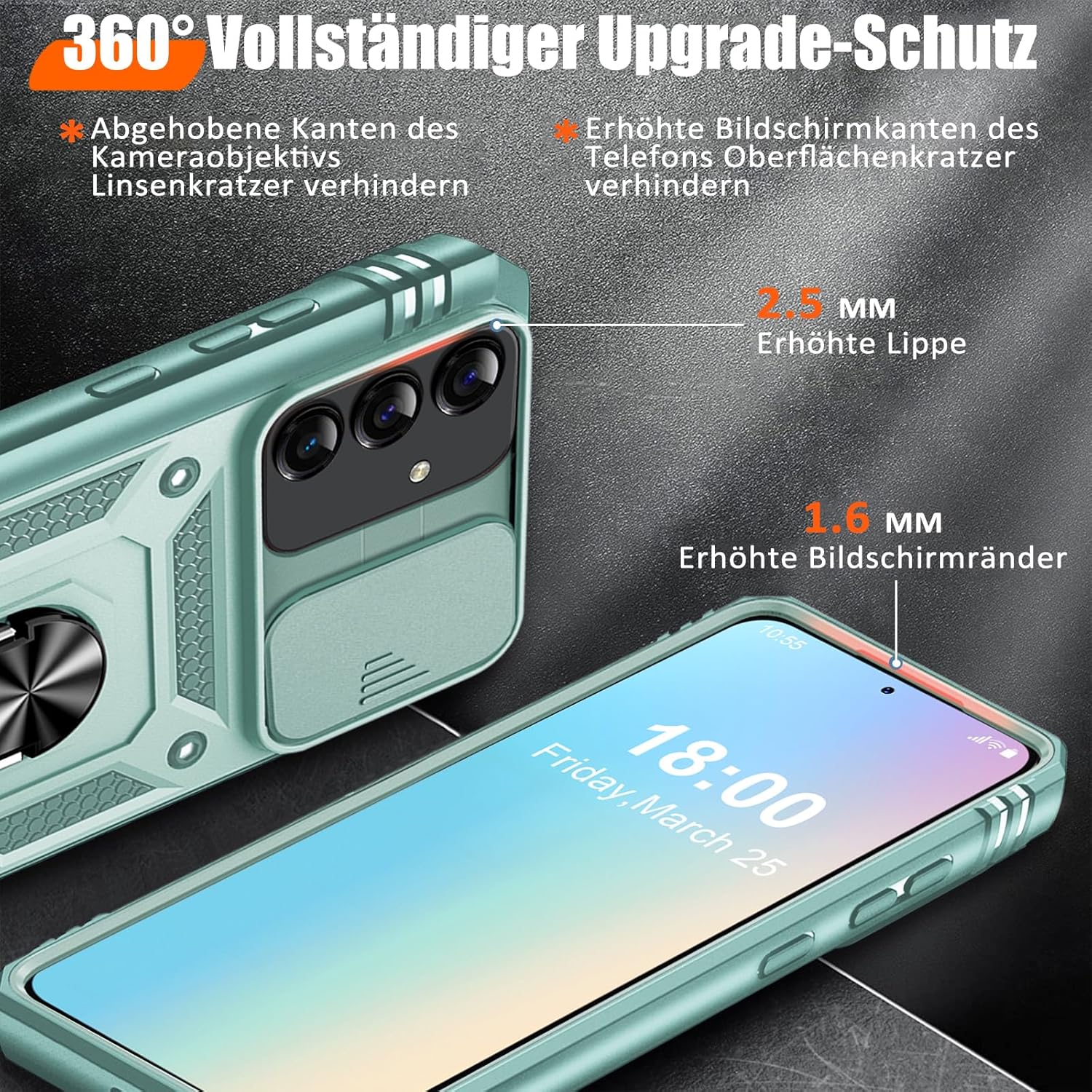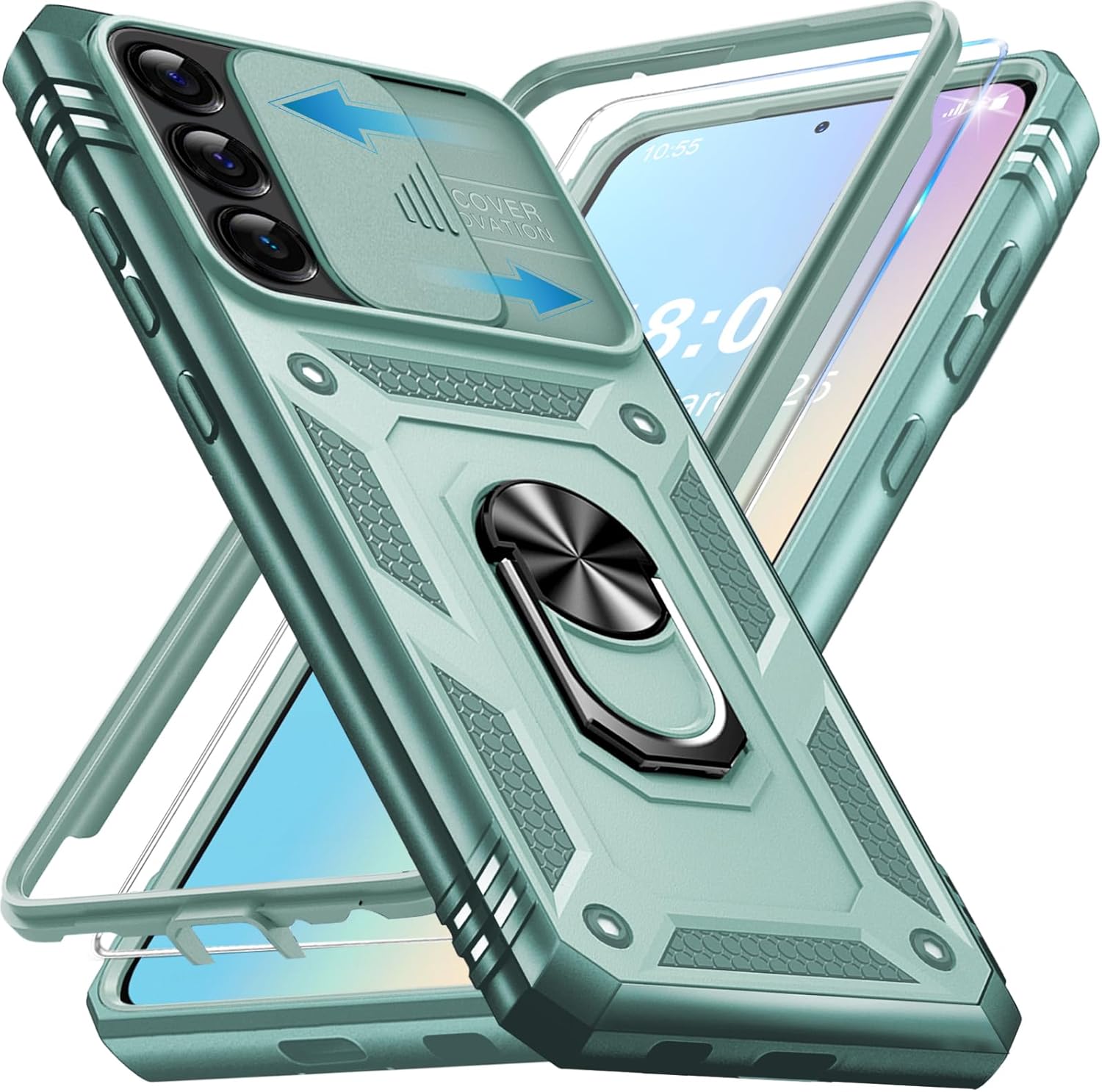 Брониран калъф Giyer за Samsung Galaxy S25 с протектор за екрана, калъф за мобилен телефон S25 със защита на камерата, 360° метална пръстеновидна стойка, удароустойчив защитен калъф за Samsung S25 5G