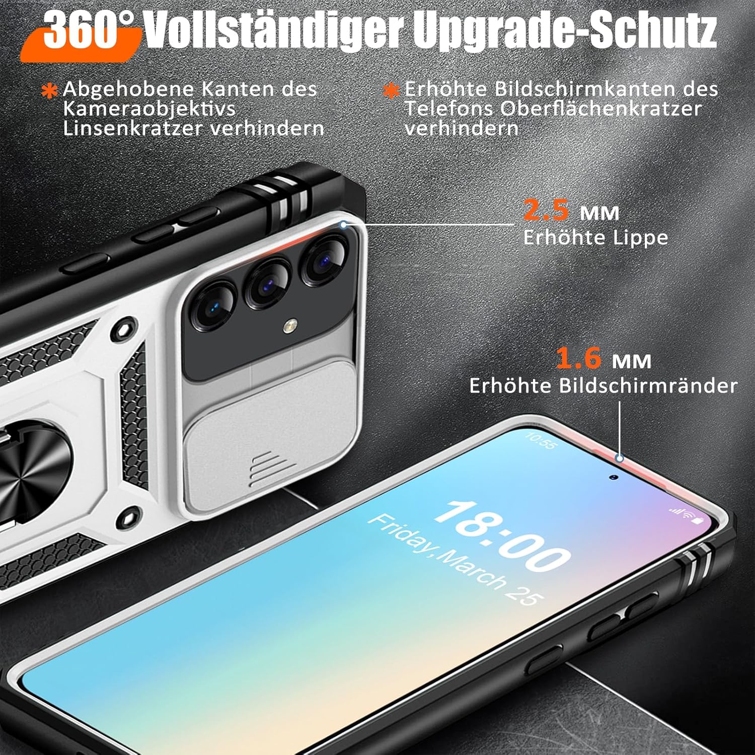 Брониран калъф Giyer за Samsung Galaxy S25 с протектор за екрана, калъф за мобилен телефон S25 със защита на камерата, 360° метална пръстеновидна стойка, удароустойчив защитен калъф за Samsung S25 5G