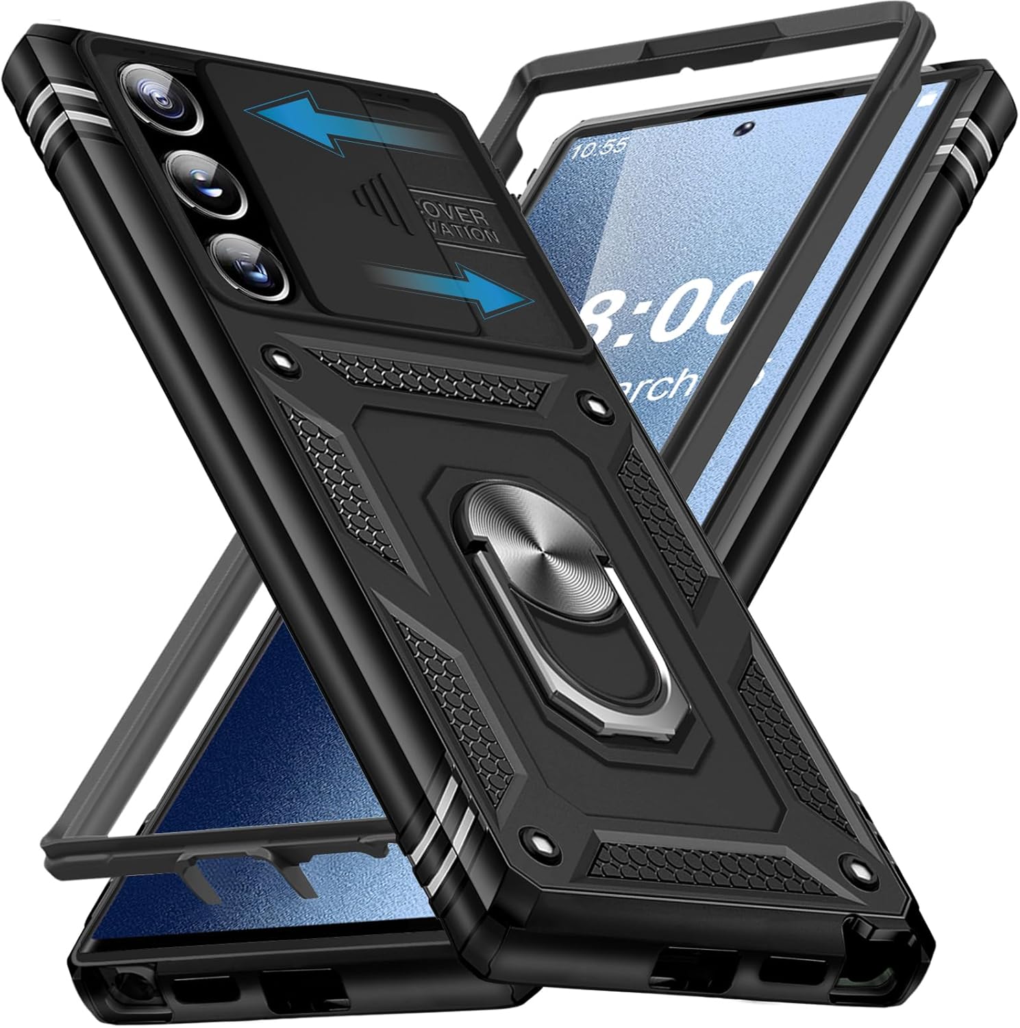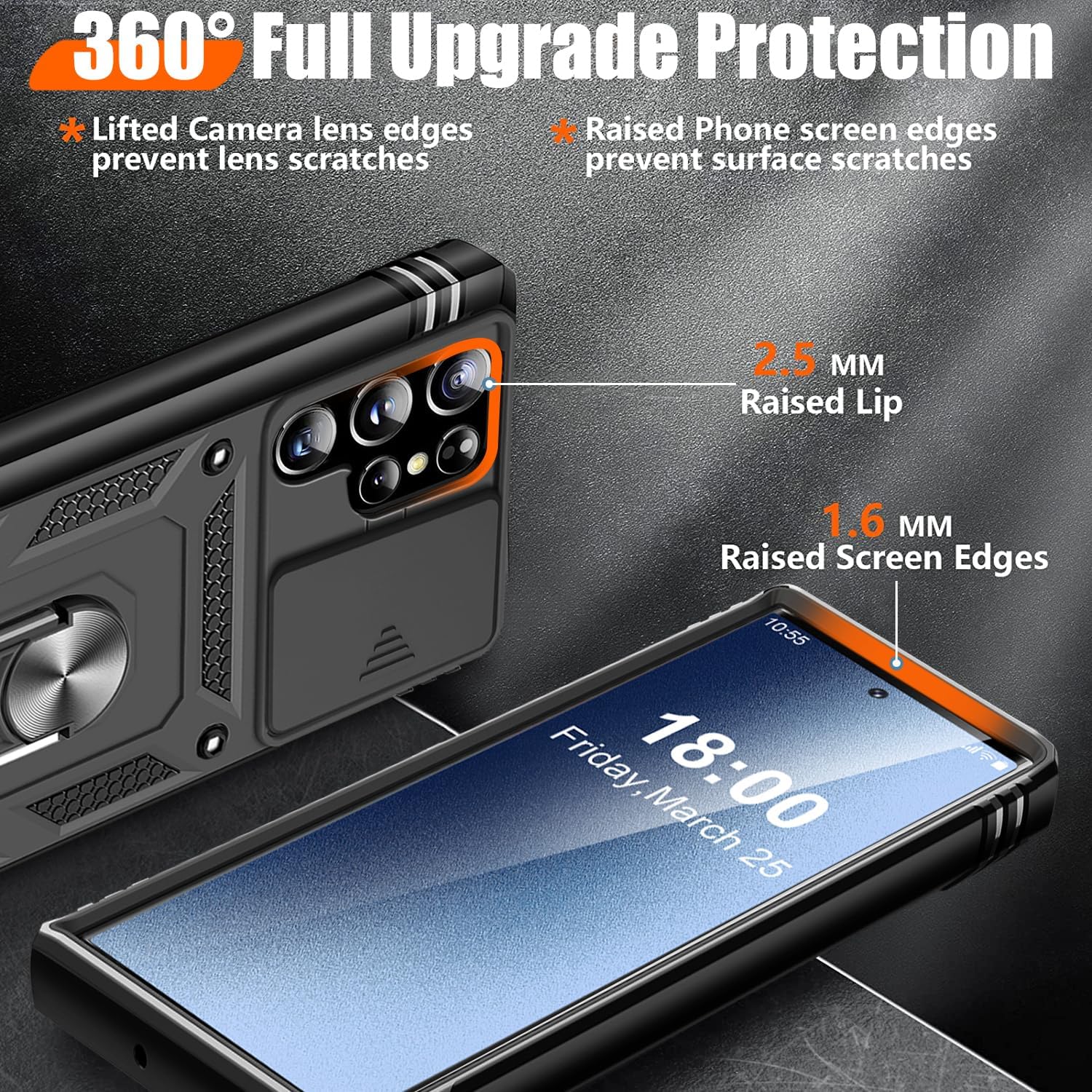 Брониран калъф Giyer за Samsung Galaxy S25 Ultra, калъф за мобилен телефон Galaxy S25 Ultra със защита на камерата 360° метална пръстенна стойка, защитен калъф за Samsung S25 Ultra 5G калъф (черен)