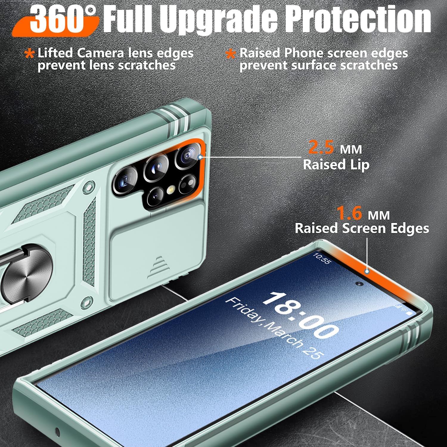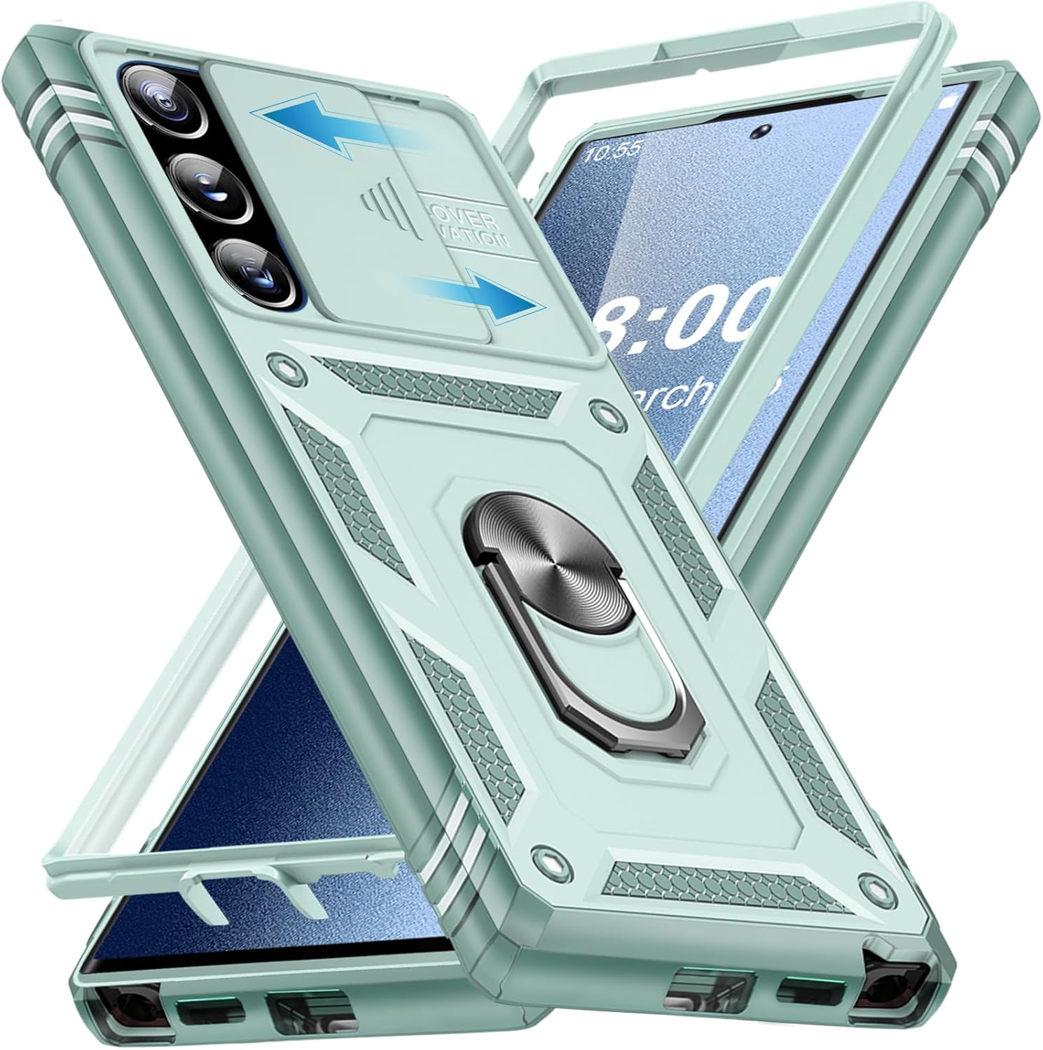 Брониран калъф Giyer за Samsung Galaxy S25 Ultra, калъф за мобилен телефон Galaxy S25 Ultra със защита на камерата, метална пръстеновидна стойка 360°, защитен калъф за Samsung S25 Ultra 5G (ментов)