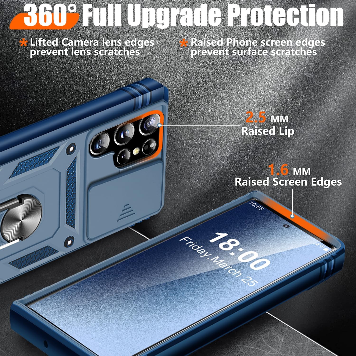 • Защита от военен клас: калъфът за Galaxy S25 използва уникален TPU с ръбове в комбинация с вградени PC 2-в-1 затваряния, за да предпази телефона ви от падания, драскотини и удари. Защитата от военен клас с технология с въздушна възглавница осигурява цялостна защита за вашето оборудване. Дизайн с плъзгач на обектива: Повдигната рамка за защита на камерата. Капачката покрива обектива и го предпазва от прах и драскотини.
