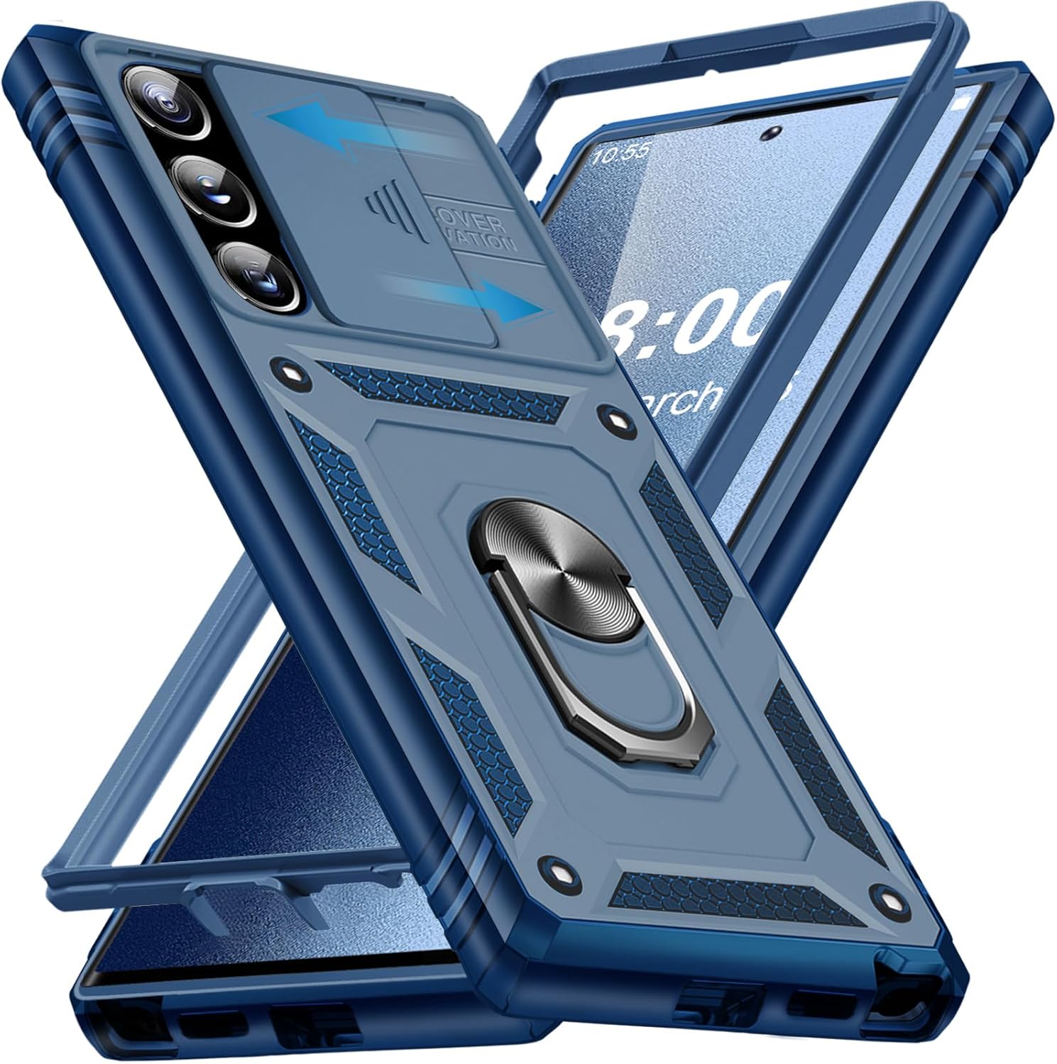 Брониран калъф Giyer за Samsung Galaxy S25 Ultra, калъф за мобилен телефон Galaxy S25 Ultra със защита на камерата, метална пръстеновидна стойка 360°, защитен калъф за Samsung S25 Ultra 5G (син)