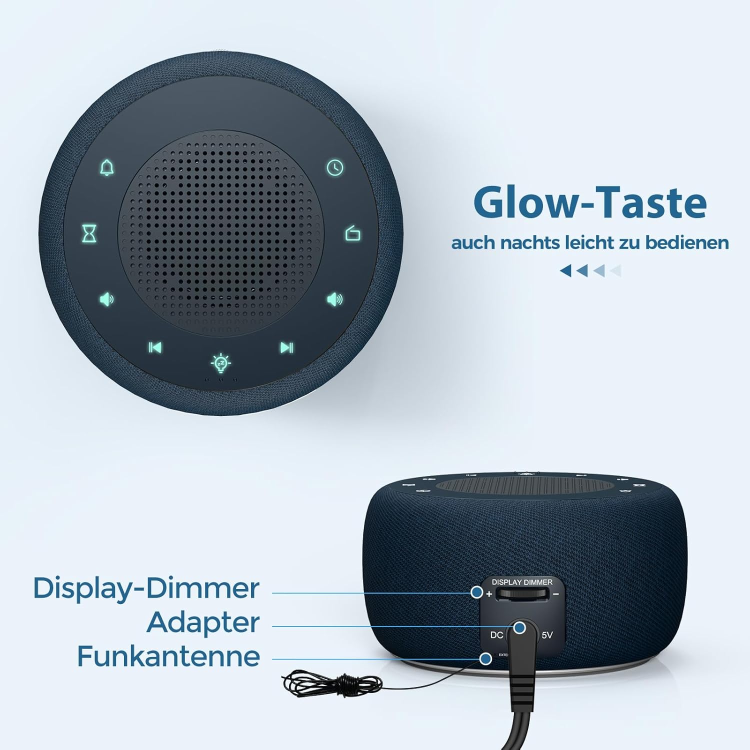 • 7-ЦВЕТНА НОЩНА СВЕТЛИНА И БУТОНИ ЗА СВЕТЯЩИ СЕ БУТОНИ 7-цветната нощна светлина осигурява успокояваща среда, която ви приспива, а светещите бутони улесняват работата в тъмното.