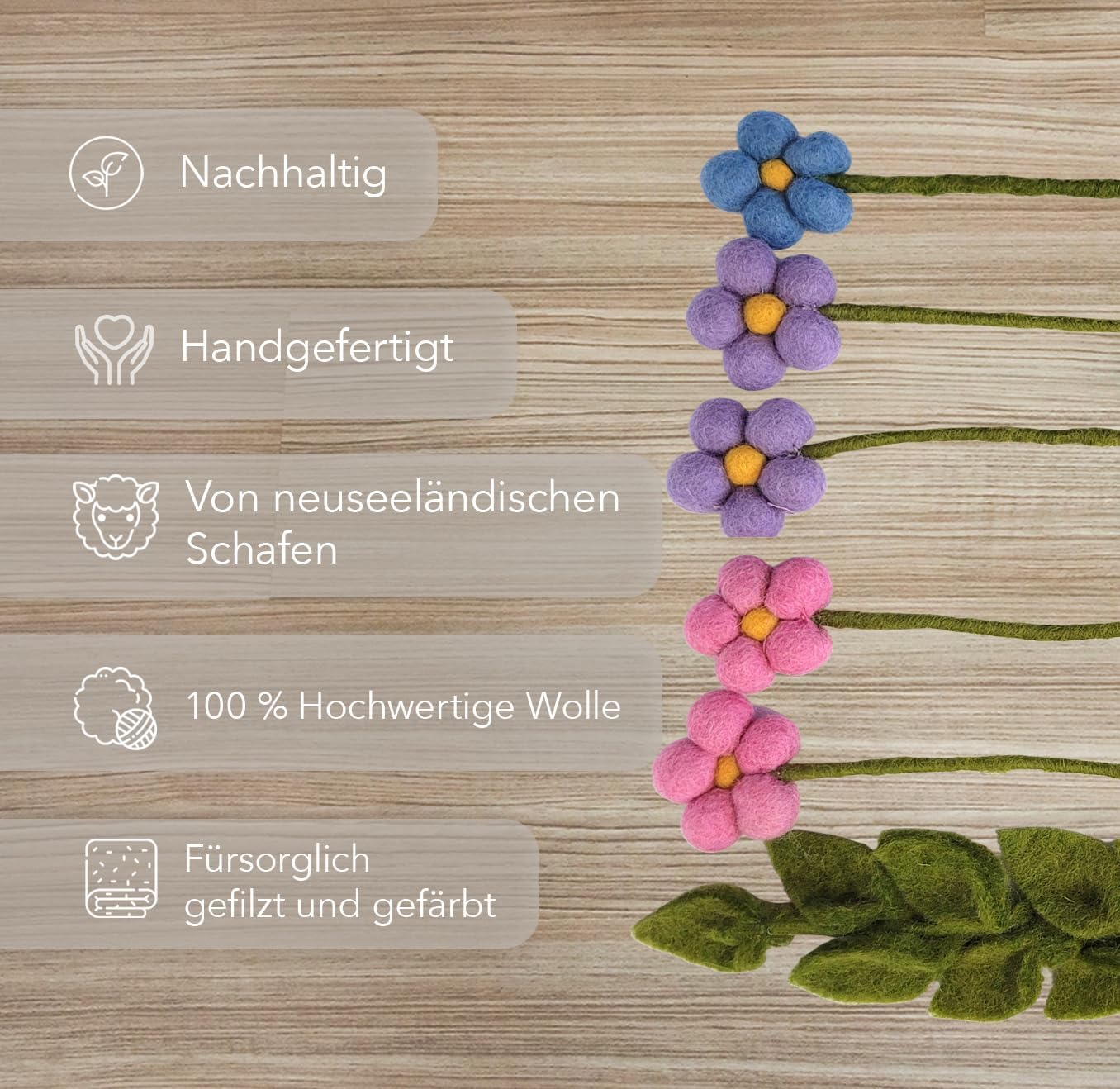 Bunter Blumenstrauss aus Filzblumen-Aus hochwertiger 100% reiner Wolle von neuseeländischen Schafen