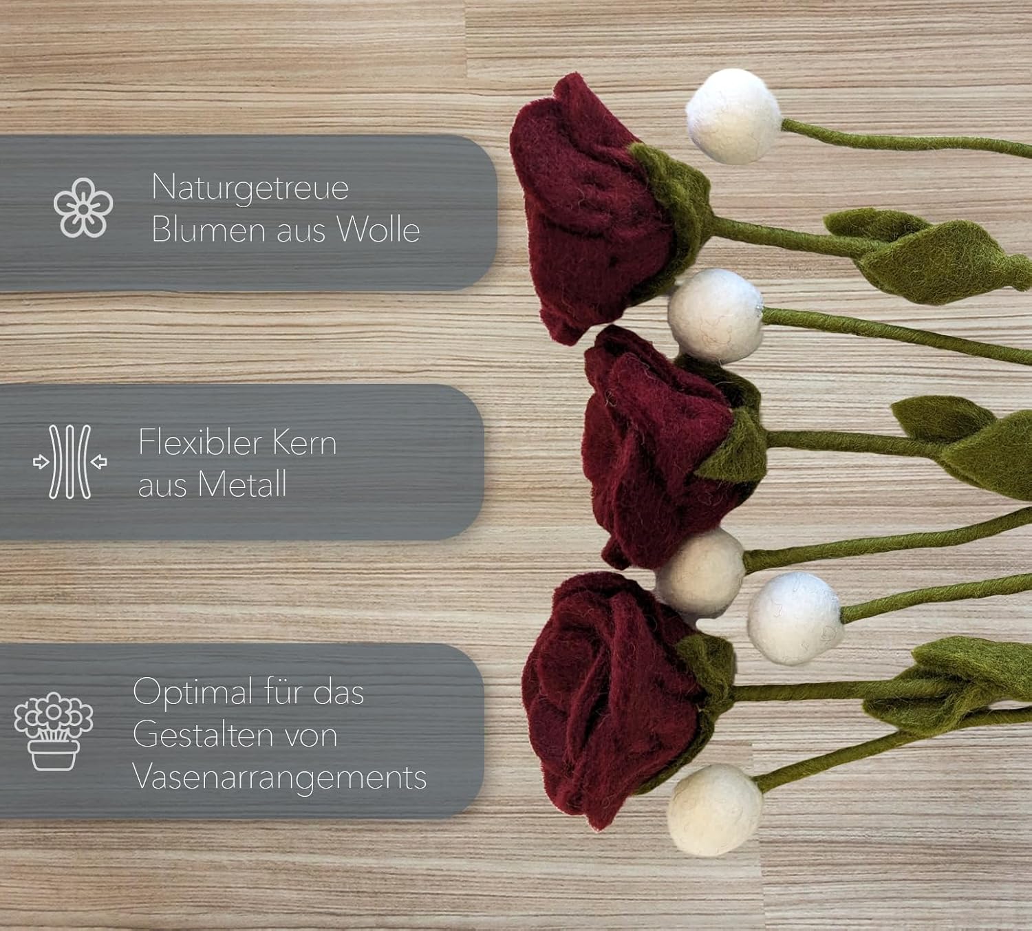 Тези изкуствени цветя са ръчно изработени, боядисани и филцови с любов от началото до края. Ръчно изработени в Непал и произведени при справедливи и етични търговски условия.