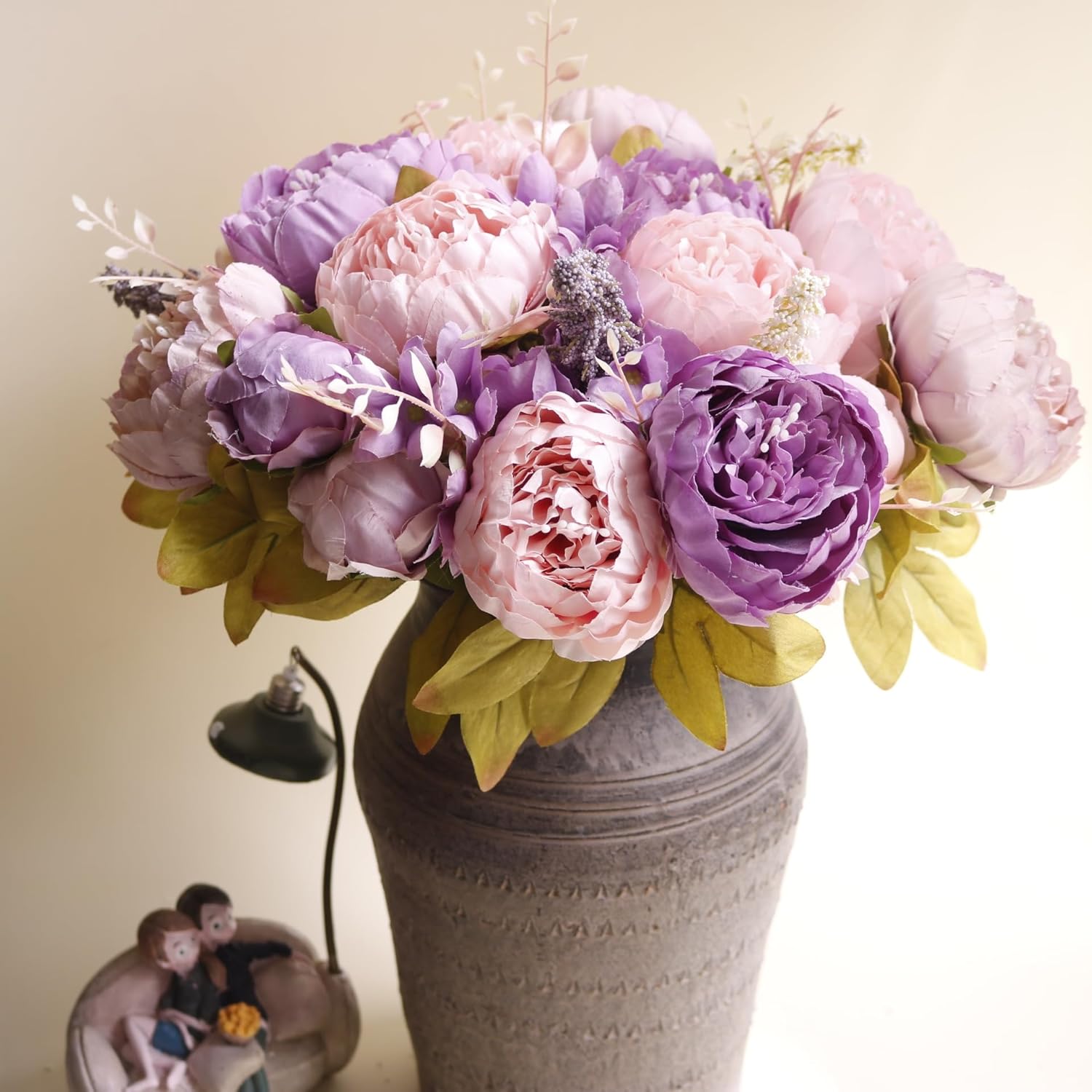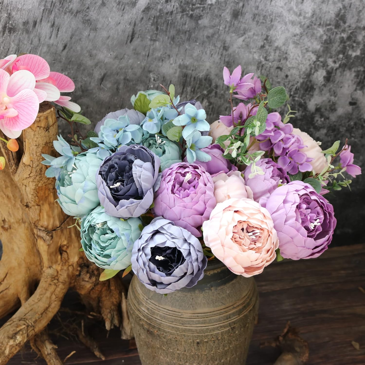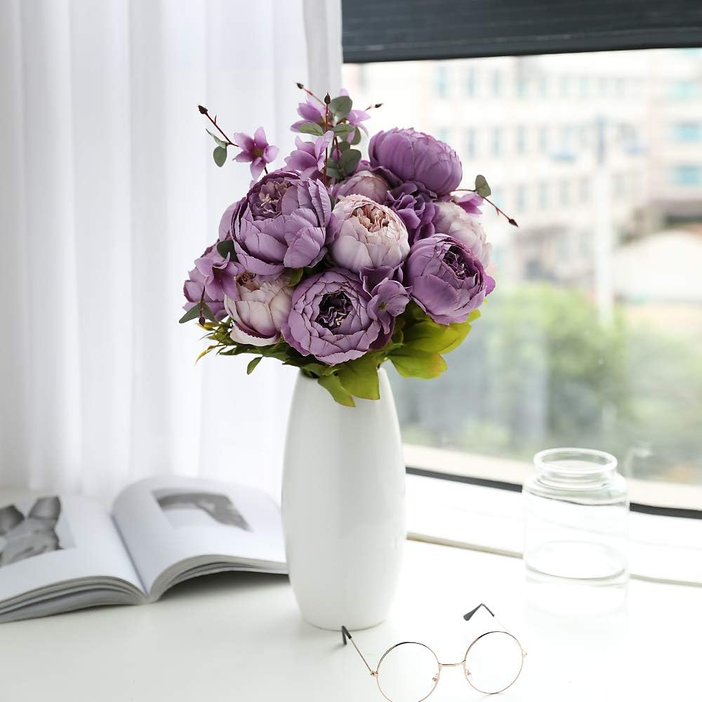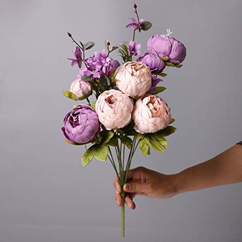 Перфектен за „Направи си сам“: букет от многостъблени божури има 6 големи глави божури, две цветни пъпки, множество цветни мехурчета, идеален е за „Направи си сам“ цветни аранжировки, централни декорации за маса, сватбени букети, бебешки партита, аксесоари, бутониери за ревери, подаръчни пакети и др. Изкуствените цветя са лесни за поддръжка, не изискват поливане и никога не увяхват.