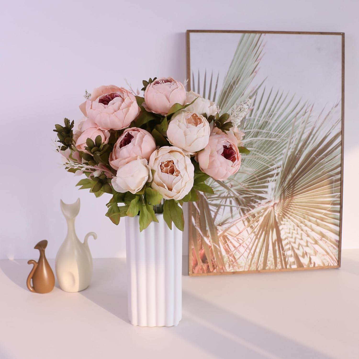 Перфектен за „Направи си сам“: букет от многостъблени божури има 6 големи глави божури, две цветни пъпки, множество цветни мехурчета, идеален е за „Направи си сам“ цветни аранжировки, централни декорации за маса, сватбени букети, бебешки партита, аксесоари, бутониери за ревери, подаръчни пакети и др. Изкуствените цветя са лесни за поддръжка, не изискват поливане и никога не увяхват.