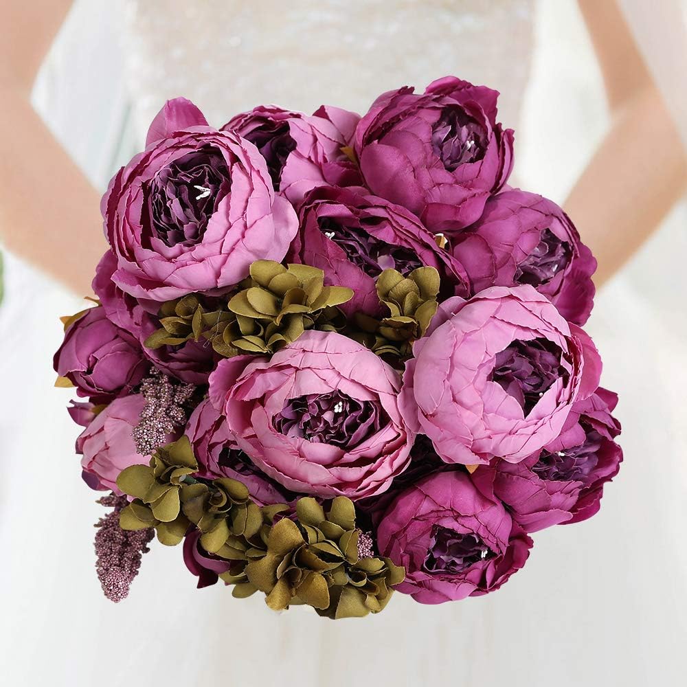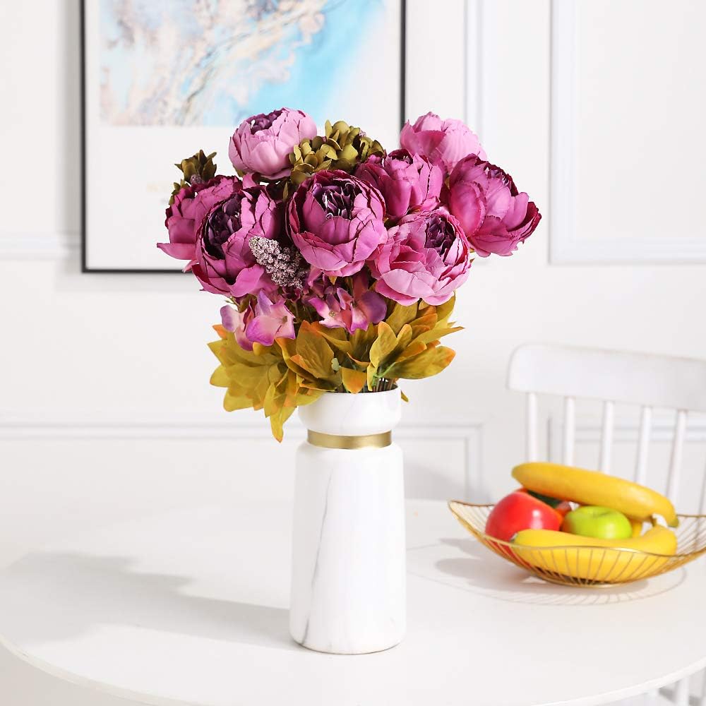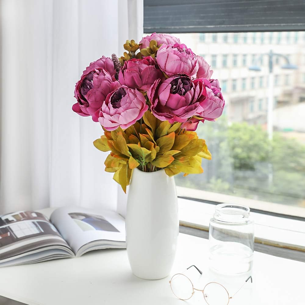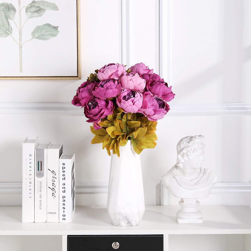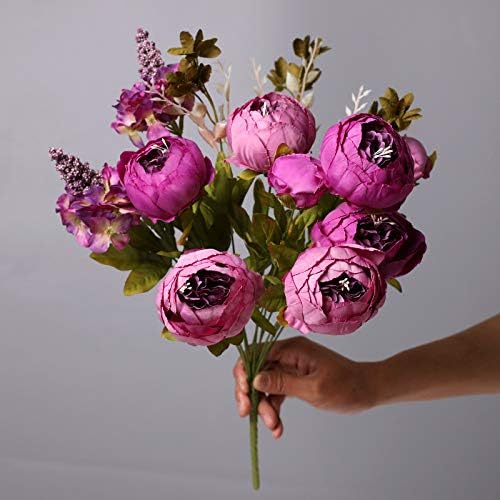 Перфектен за „Направи си сам“: букет от многостъблени божури има 6 големи глави божури, две цветни пъпки, множество цветни мехурчета, идеален е за „Направи си сам“ цветни аранжировки, централни декорации за маса, сватбени букети, бебешки партита, аксесоари, бутониери за ревери, подаръчни пакети и др. Изкуствените цветя са лесни за поддръжка, не изискват поливане и никога не увяхват.