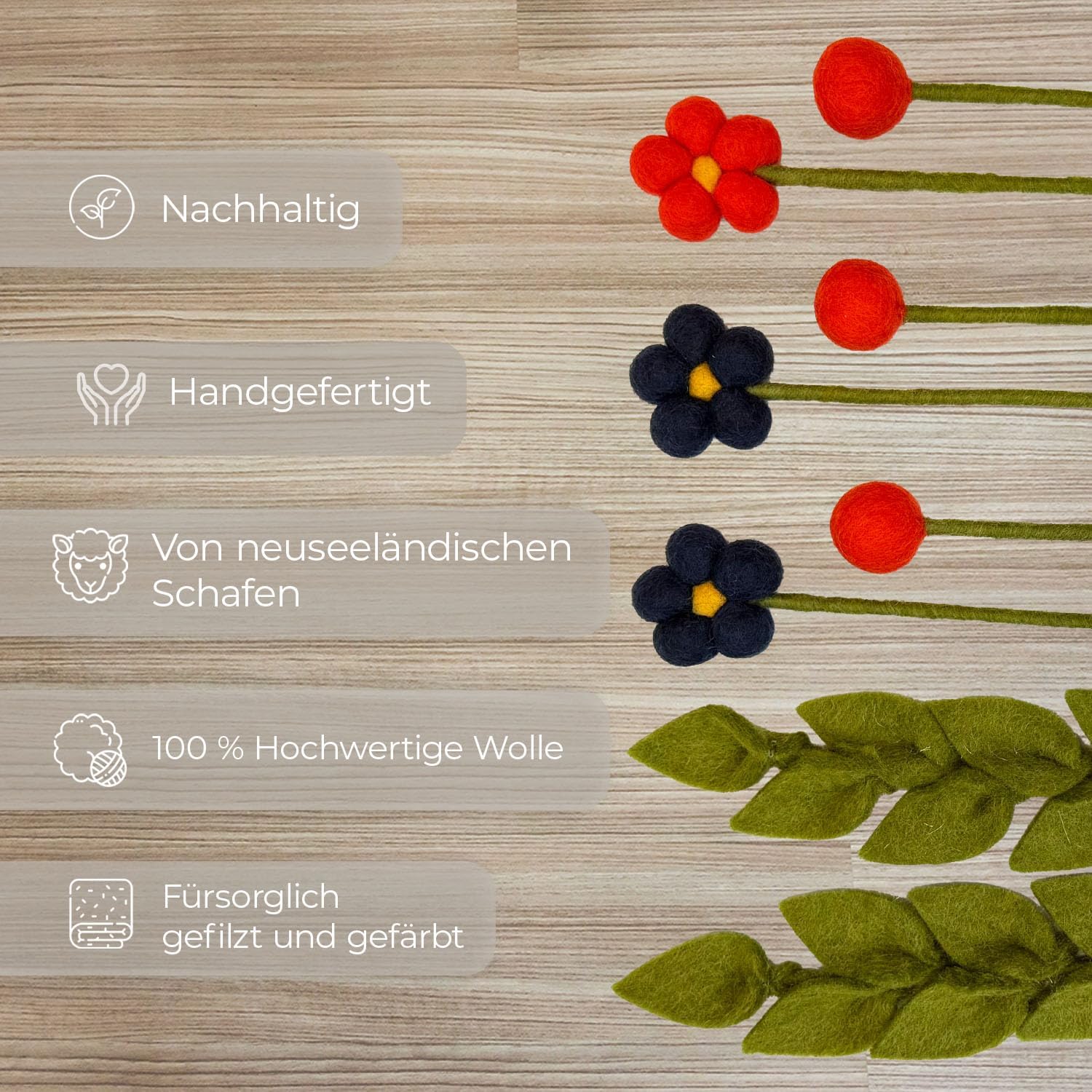 Bunter Blumenstrauss aus Filzblumen-Aus hochwertiger 100% reiner Wolle von neuseeländischen Schafen