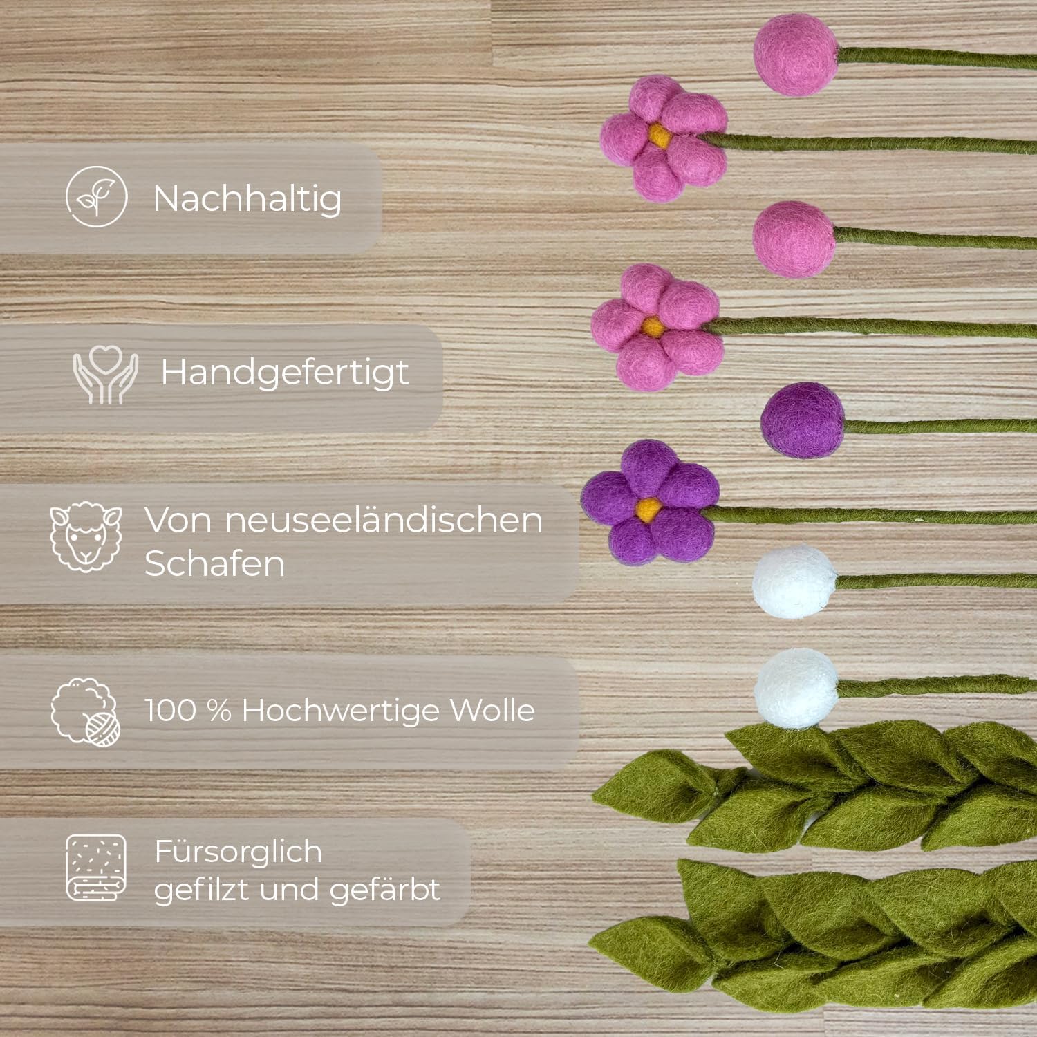 Bunter Blumenstrauss aus Filzblumen-Aus hochwertiger 100% reiner Wolle von neuseeländischen Schafen