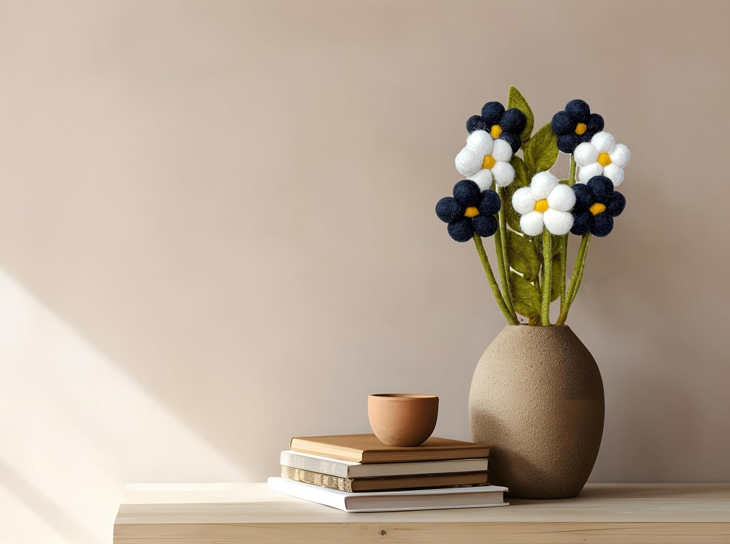 Тези изкуствени цветя са ръчно изработени, боядисани и филцови с любов от началото до края. Ръчно изработени в Непал и произведени при справедливи и етични търговски условия.