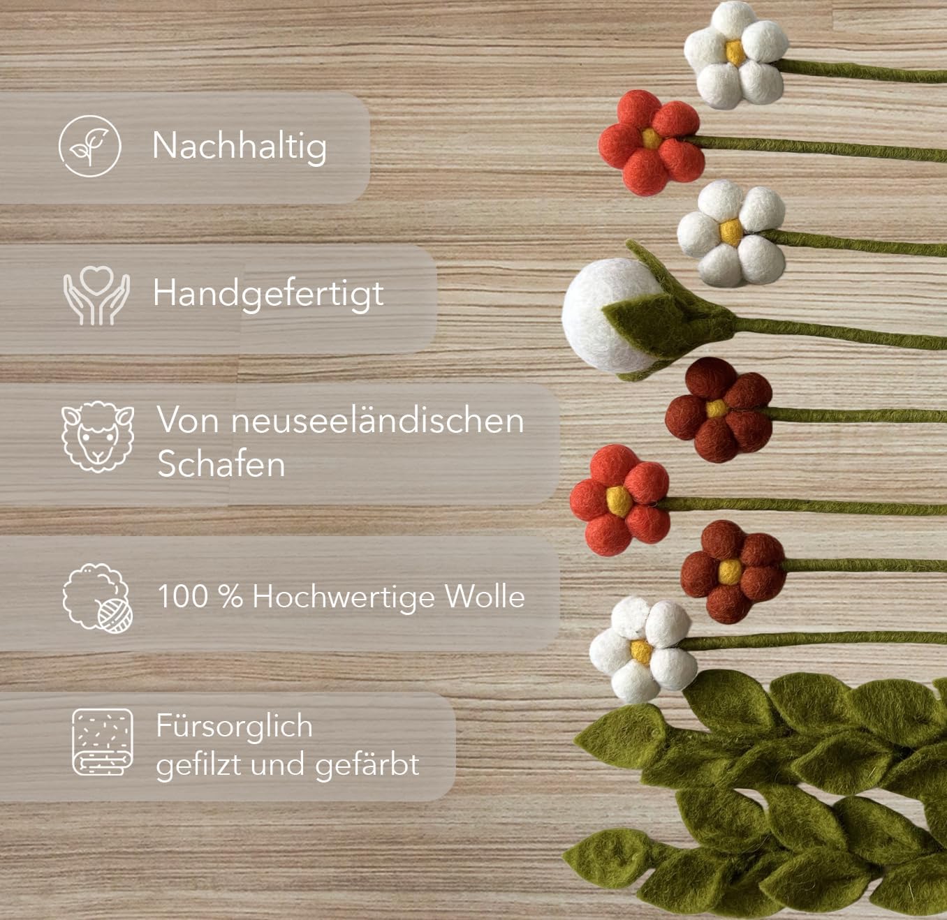 Bunter Blumenstrauss aus Filzblumen-Aus hochwertiger 100% reiner Wolle von neuseeländischen Schafen