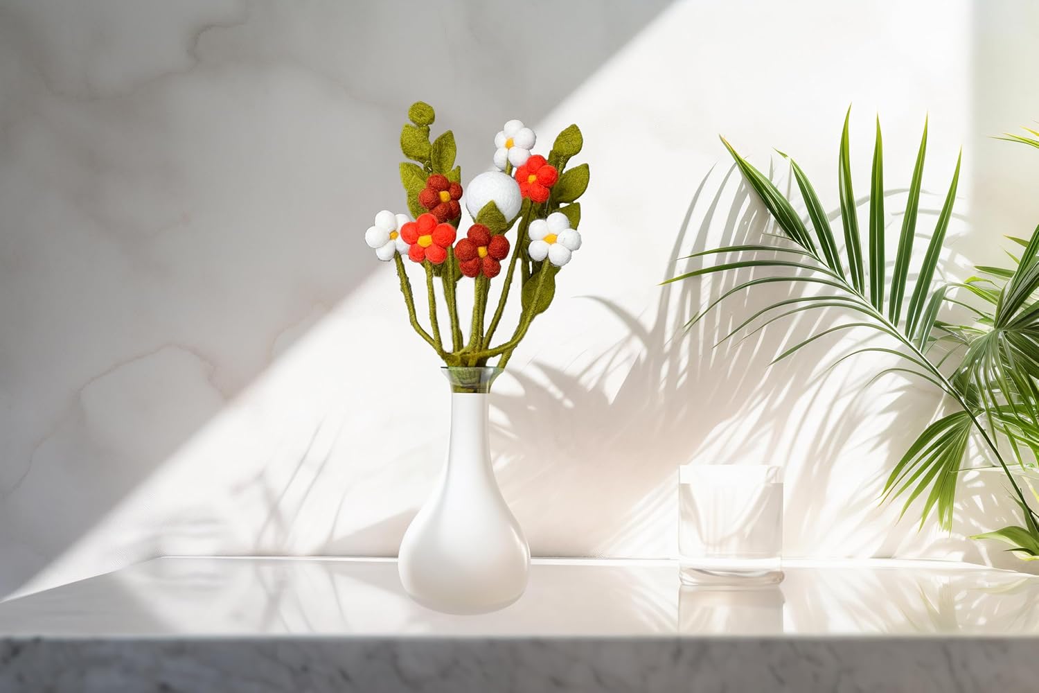 Тези изкуствени цветя са ръчно изработени, боядисани и филцови с любов от началото до края. Ръчно изработени в Непал и произведени при справедливи и етични търговски условия.