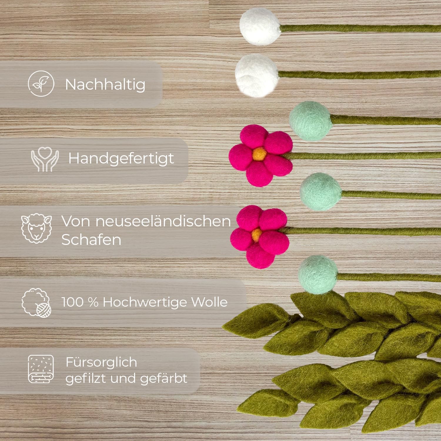 Bunter Blumenstrauss aus Filzblumen-Aus hochwertiger 100% reiner Wolle von neuseeländischen Schafen