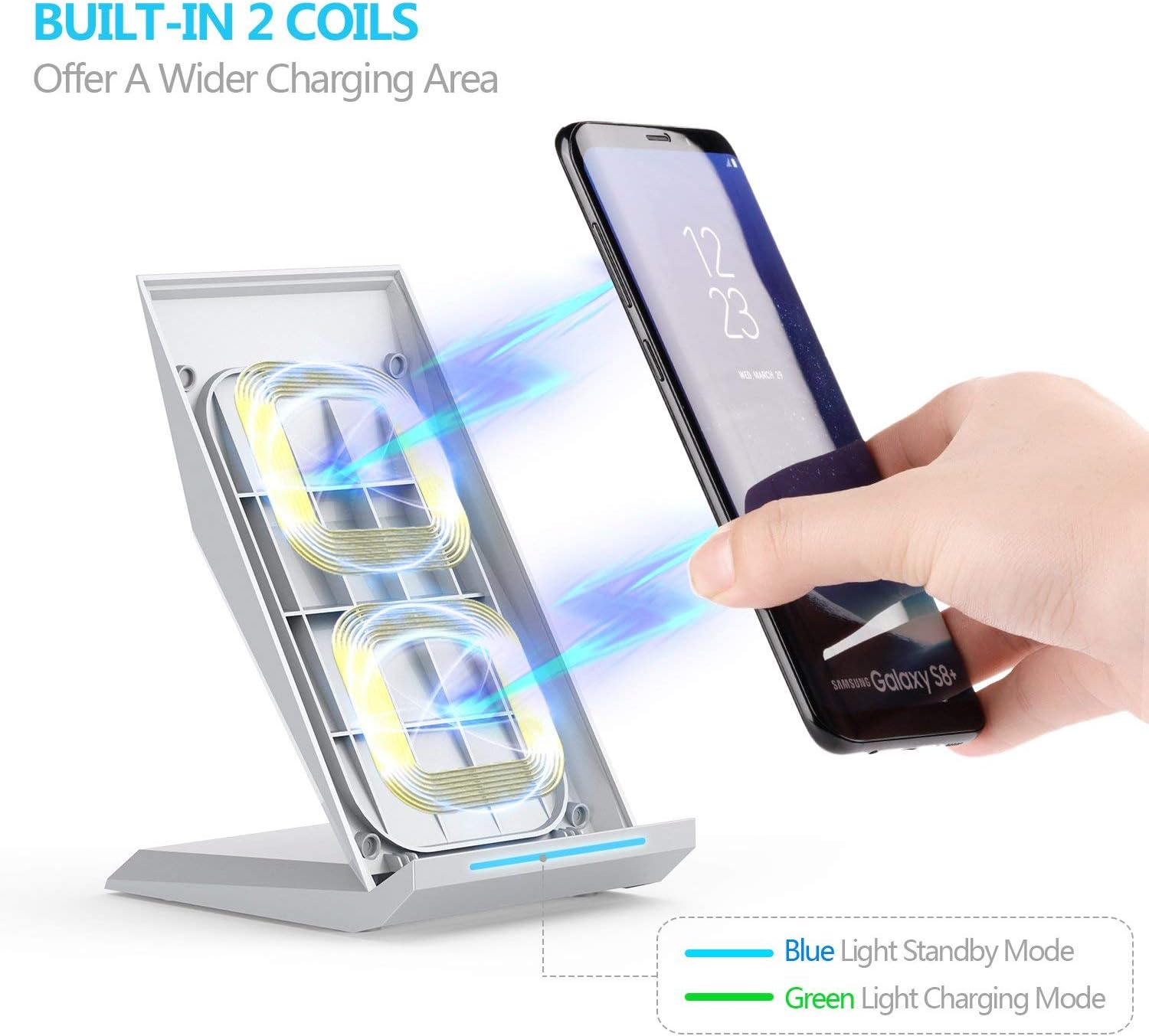 • Висока ефективност на безжичното зареждане: най-новият интелигентен контролен чип осигурява висок процент на конверсия от 80%. Станции за зареждане на мобилни телефони с вградена верига за защита от презареждане и преобръщане, никога не презареждат батерията ви и не изразходват енергия, напълно екологични. Работи с повечето видове калъфи, като гумени калъфи, ултрахибридни корпуси, пластмасови/TPU/PC калъфи; не трябва да са по-дебели от 5 мм.