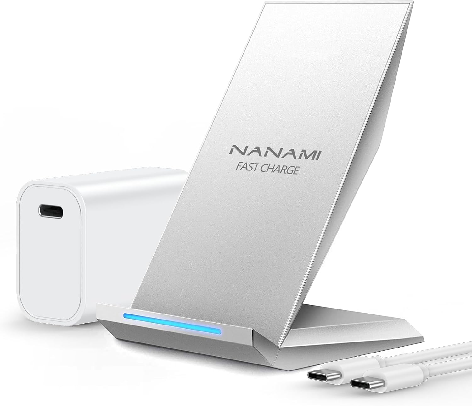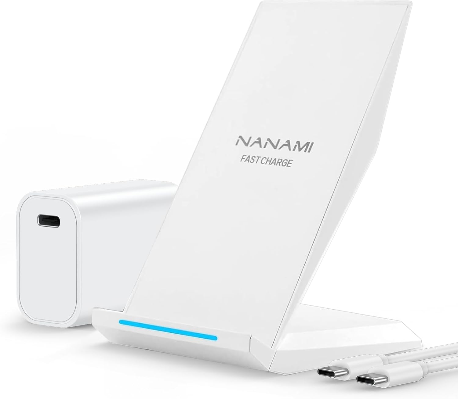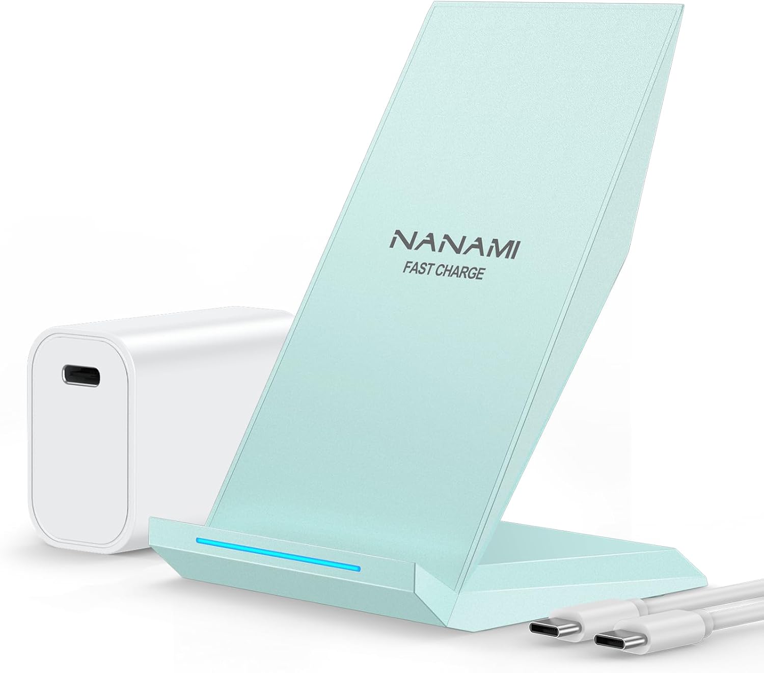 Бързо безжично зарядно, NANAMI Qi безжично зарядно (с USB C адаптер за зарядно 20W PD) за Apple iPhone 17 16 15 14 13 12 Pro Max Xr Xs, 10W индуктивна зарядна станция за Samsung Galaxy S25 S24 S23