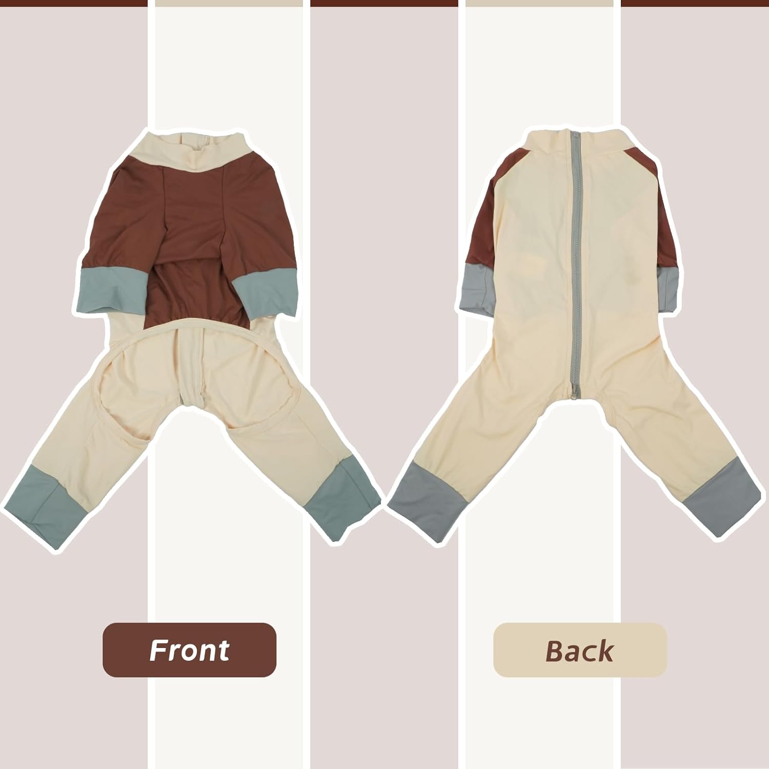 • Дрехи против облизване за поддръжка на груминг: Може да помогне за намаляване на прекомерното облизване или надраскване и да предпази чувствителните зони на кожата. Подпомага ежедневната грижа за козината. Ципът на гърба улеснява обличането и събличането.