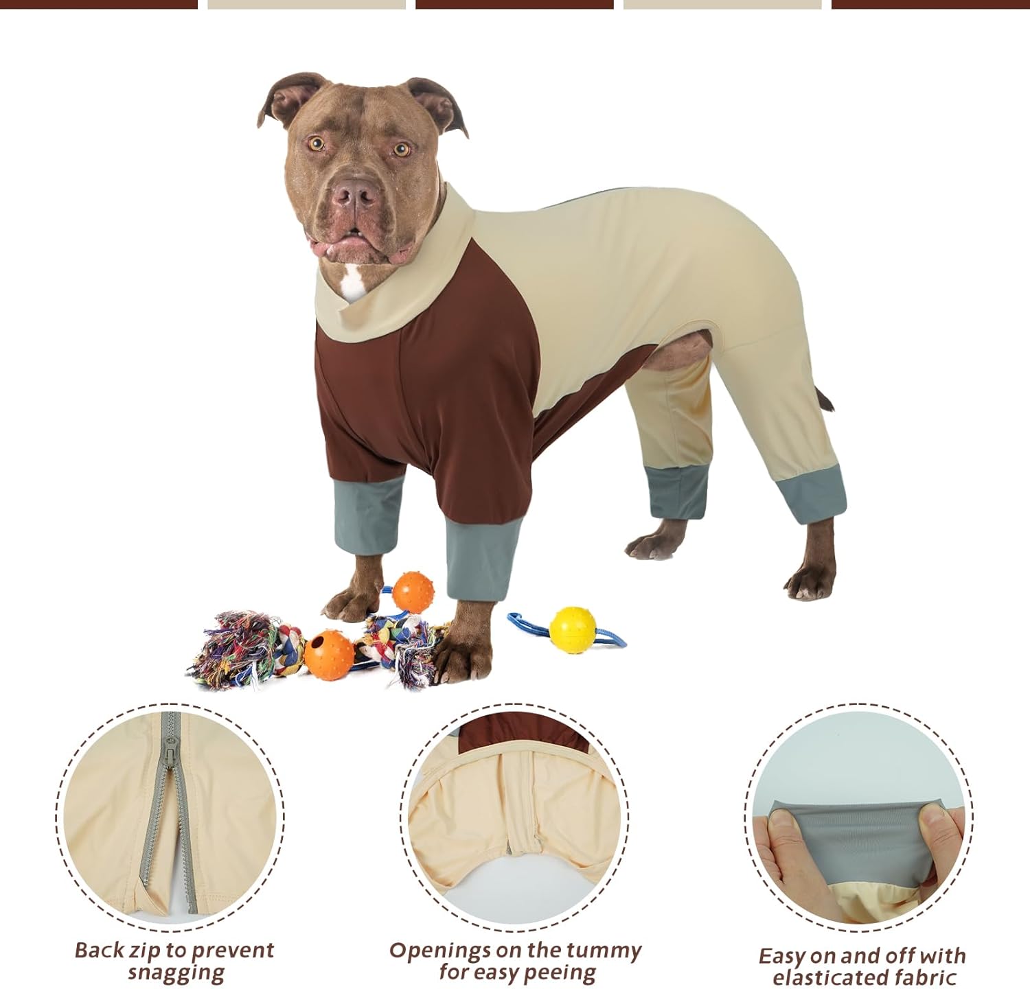• Лятна и UV защита – Костюм за цялото тяло за кучета: Лек костюм за цялото тяло за топли дни. Материалът предлага UV защита и предпазва кожата на вашето куче от слънце и топлина – идеален за градината, парка, плажа или летните разходки.