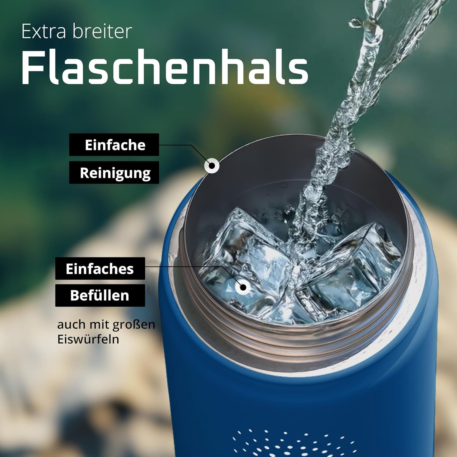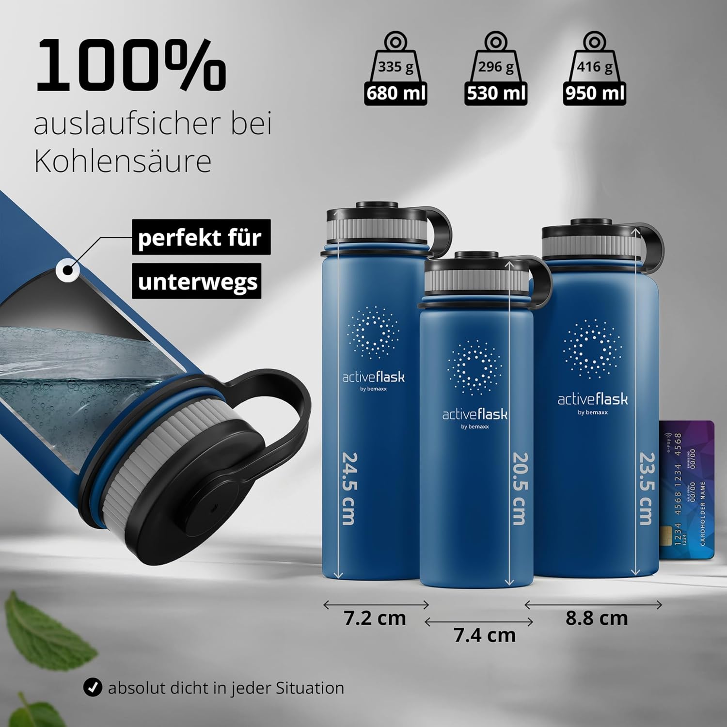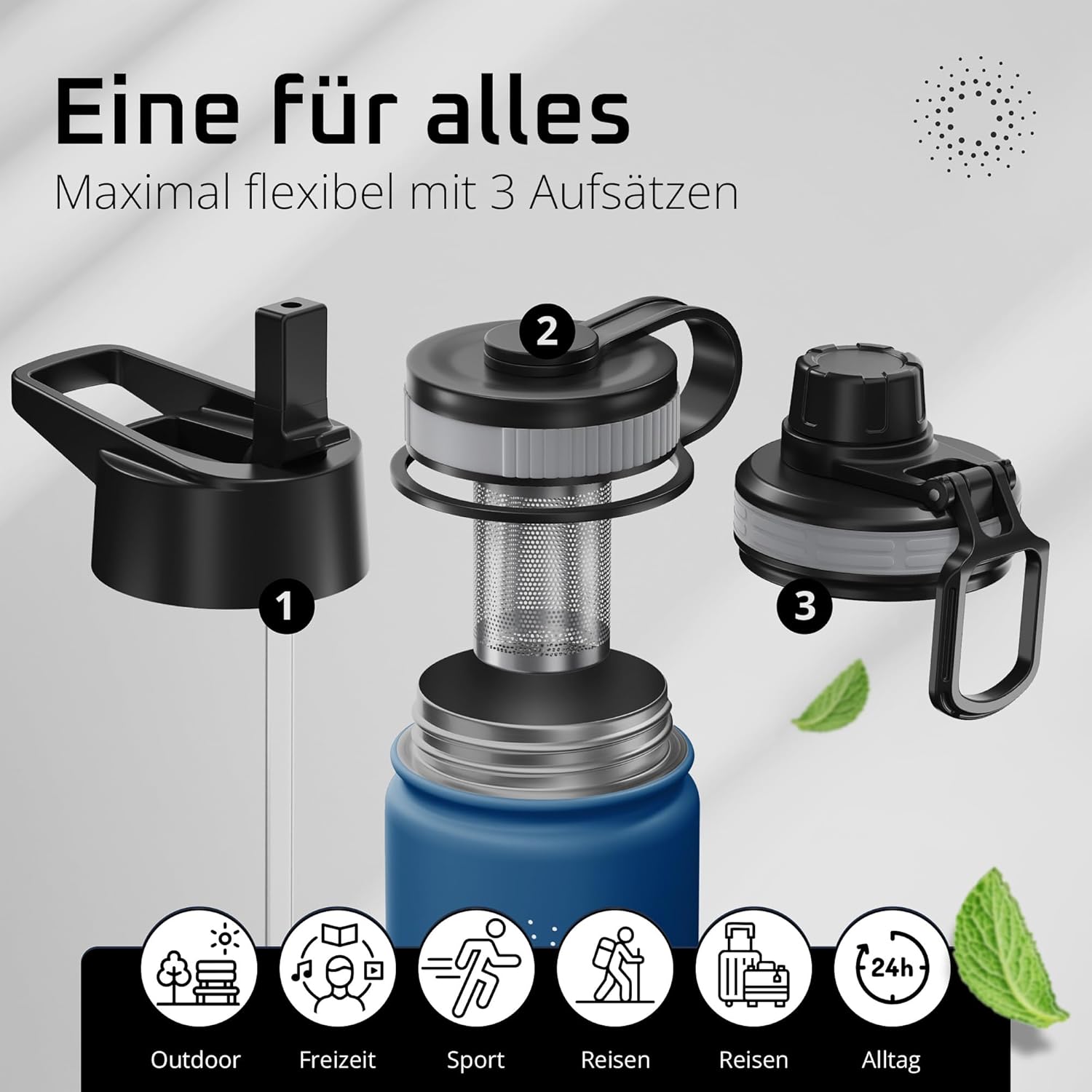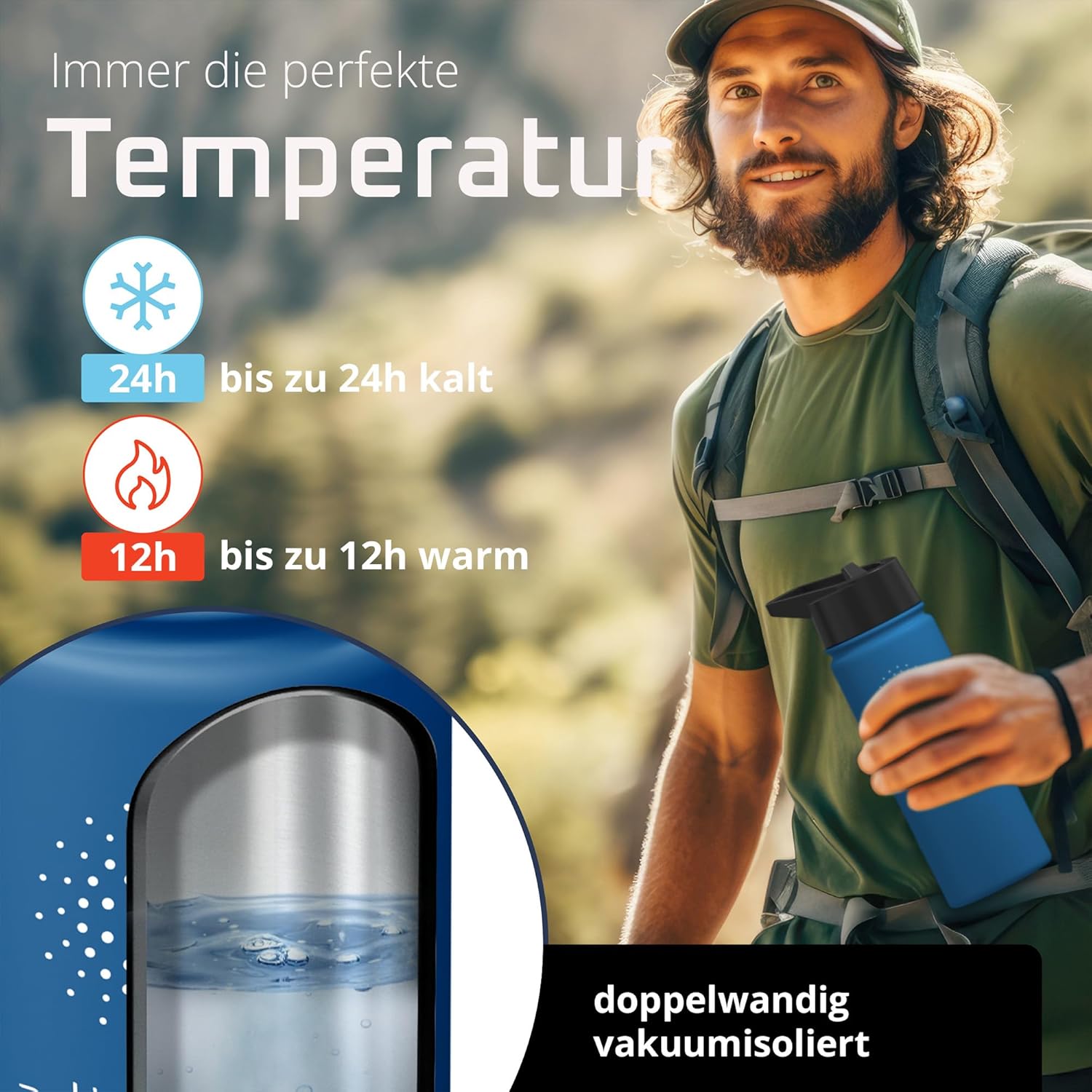 • Победител в теста: 12 часа топло и 25 часа студено | Вземете оригинала в обновен дизайн – двустенната вакуумно изолирана бутилка за пиене от неръждаема стомана с 3 различни капачки за ежедневна употреба, спорт и дейности на открито. Височина: 25 см, диаметър 9,3 см, обем: 950 мл. Тегло: 416 г. (*Настоящ победител в сравнението (категории „бутилки за пиене“ и „бутилки за пиене от неръждаема стомана“) atvergleich.org от 02/2017).