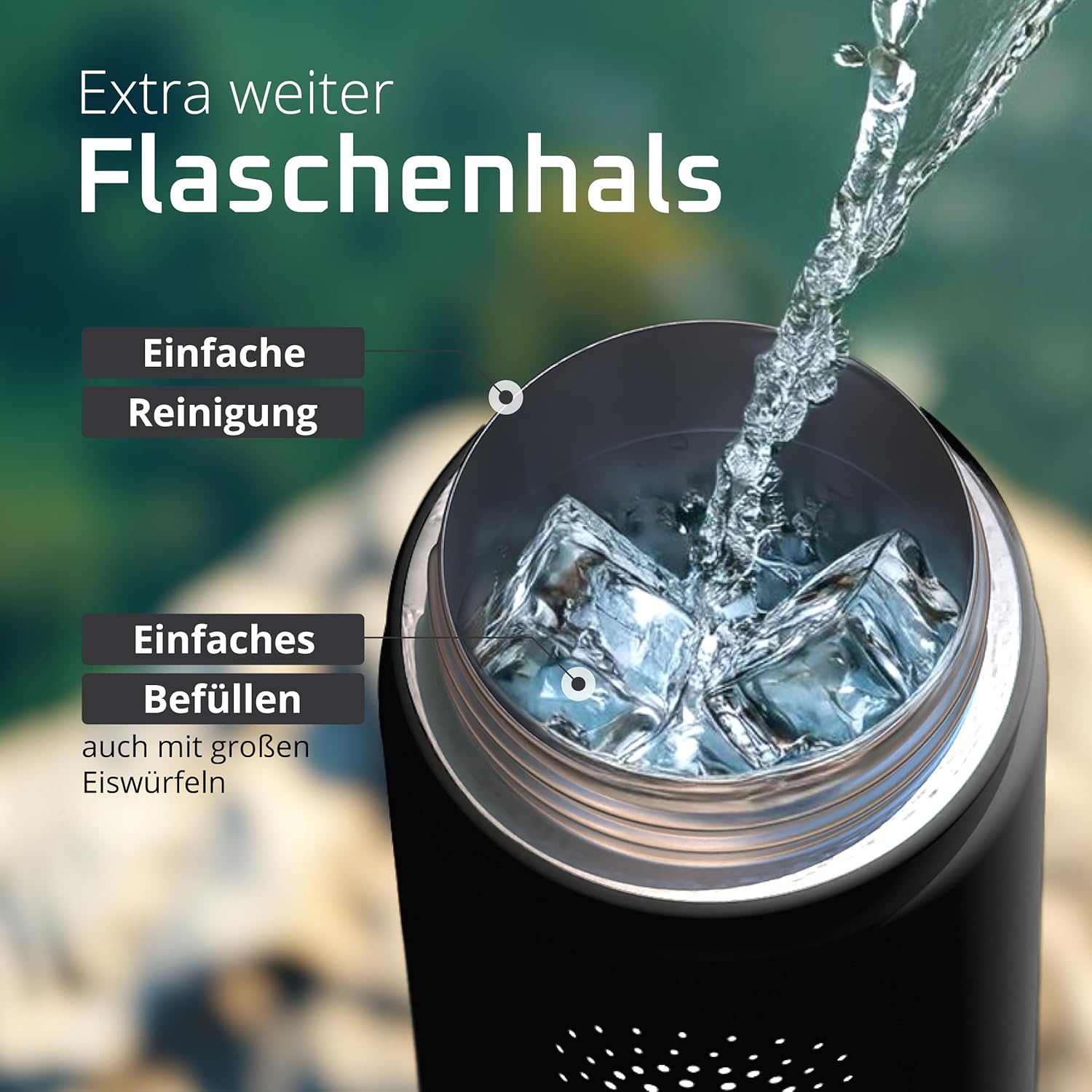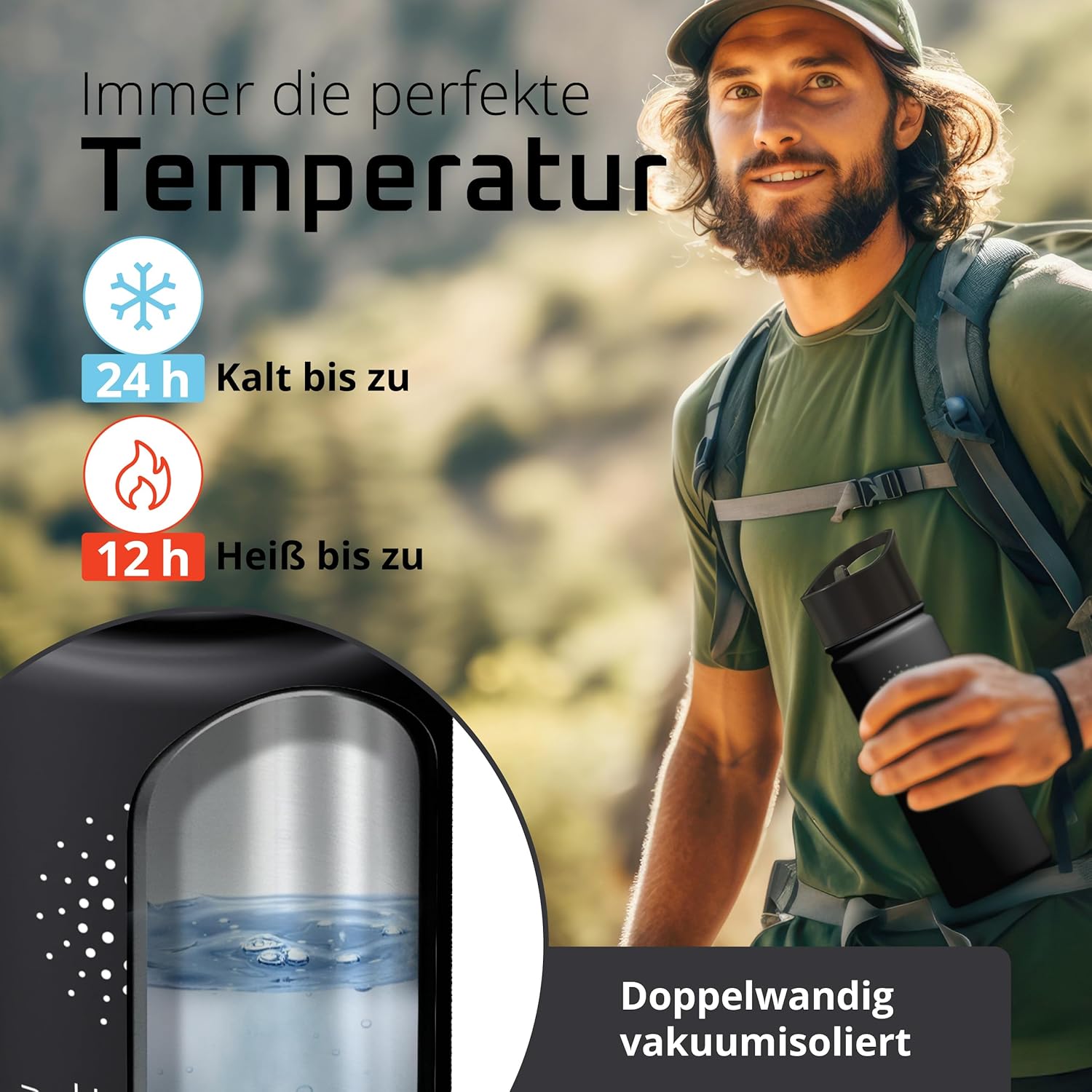 • Победител в теста: 12 часа топло и 25 часа студено | Вземете оригинала в обновен дизайн – двустенната вакуумно изолирана бутилка за пиене от неръждаема стомана с 3 различни капачки за ежедневна употреба, спорт и дейности на открито. Височина: 25 см, диаметър 9,3 см, обем: 950 мл. Тегло: 416 г. (*Настоящ победител в сравнението (категории „бутилки за пиене“ и „бутилки за пиене от неръждаема стомана“) atvergleich.org от 02/2017).
