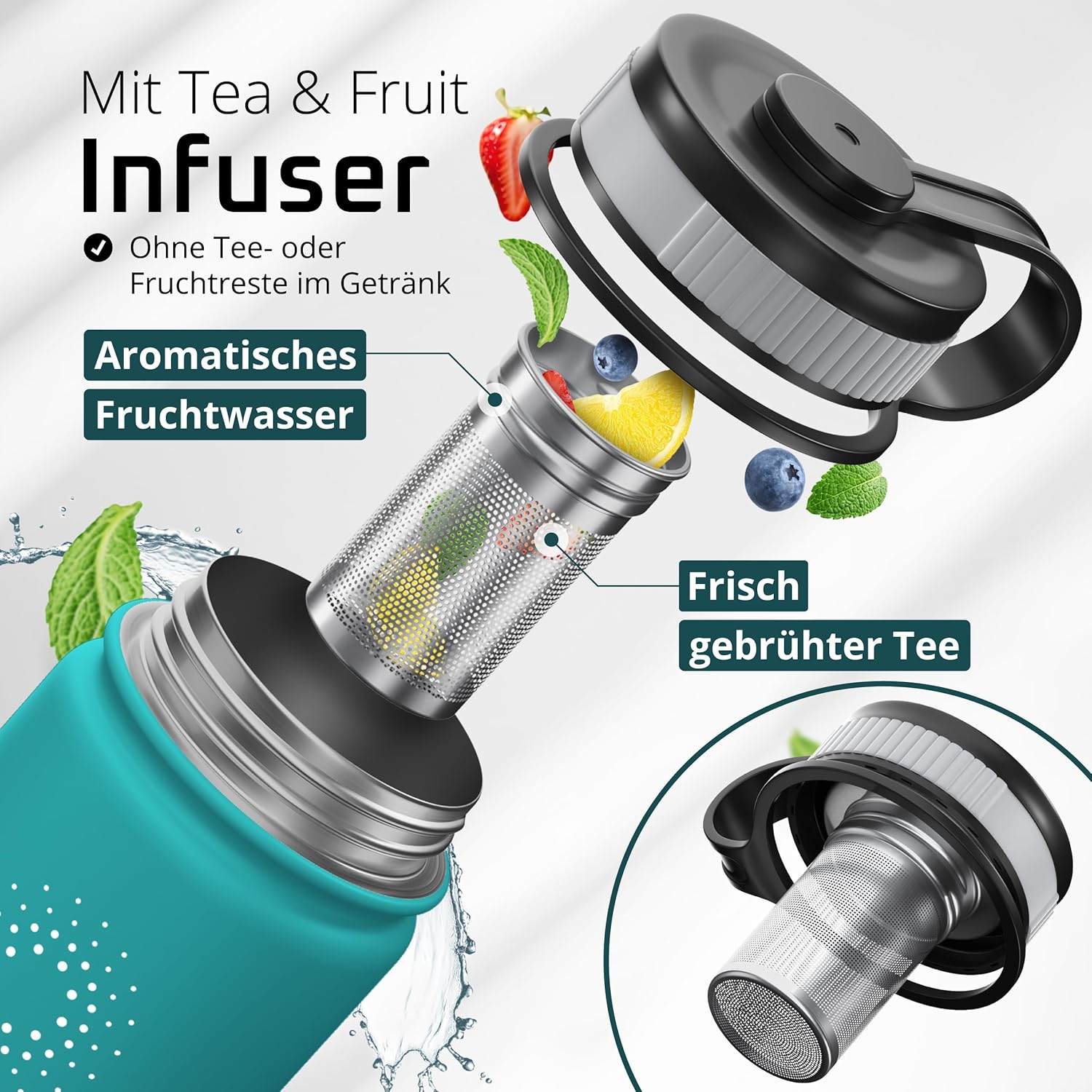 • Премиум инфузер, комплект за чай и плодове – Превърнете бутилката си за пиене в инфузер за чай или плодове за нула време и се насладете на прясно приготвен чай или пресни плодови шприцове навсякъде – без остатъци от чай или плодове да попаднат в напитката ви.
