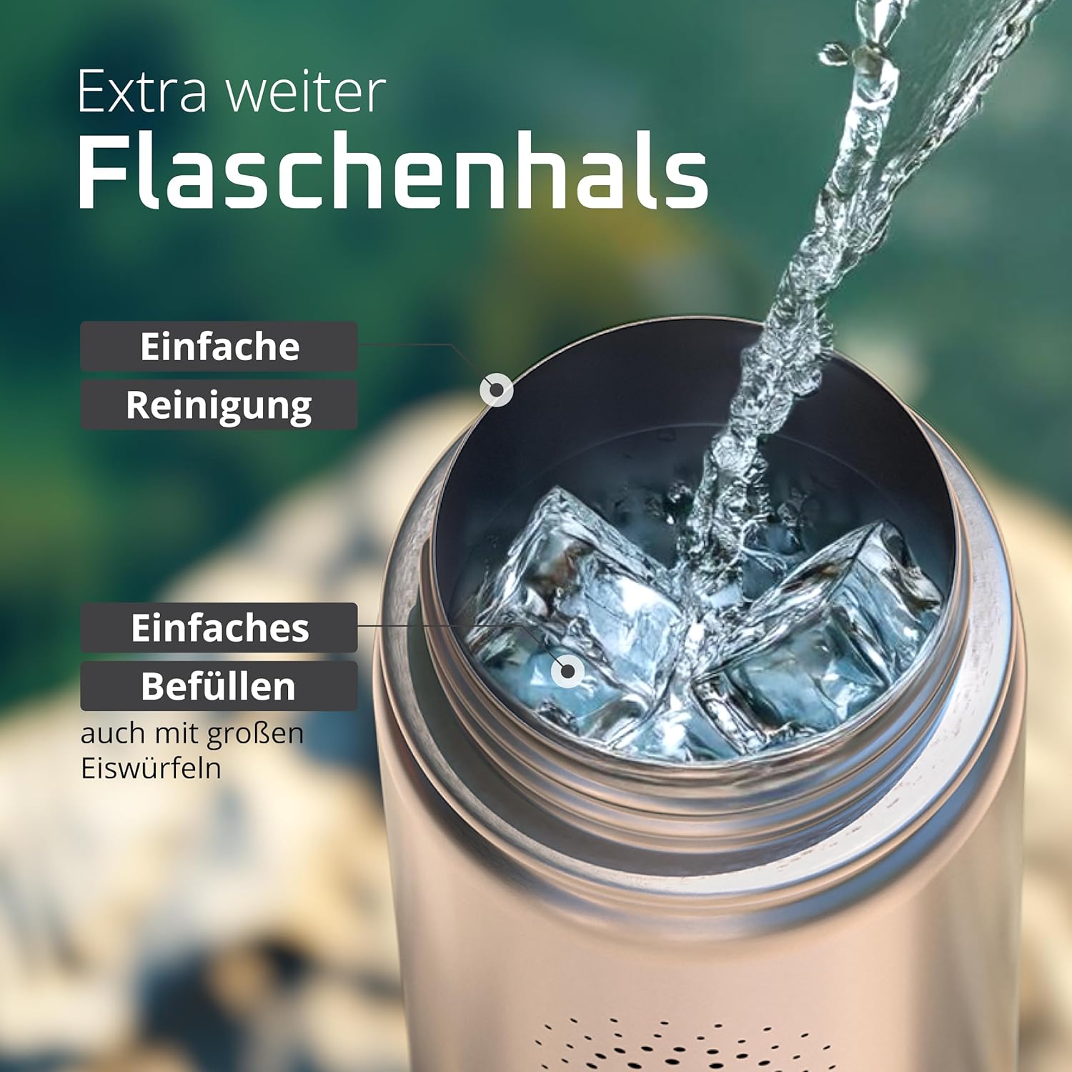 • Победител в теста: 12 часа топло и 25 часа студено | Вземете оригинала в обновен дизайн – двустенната вакуумно изолирана бутилка за пиене от неръждаема стомана с 3 различни капачки за ежедневна употреба, спорт и дейности на открито. Височина: 25 см, диаметър 9,3 см, обем: 950 мл. Тегло: 416 г. (*Настоящ победител в сравнението (категории „бутилки за пиене“ и „бутилки за пиене от неръждаема стомана“) atvergleich.org от 02/2017).