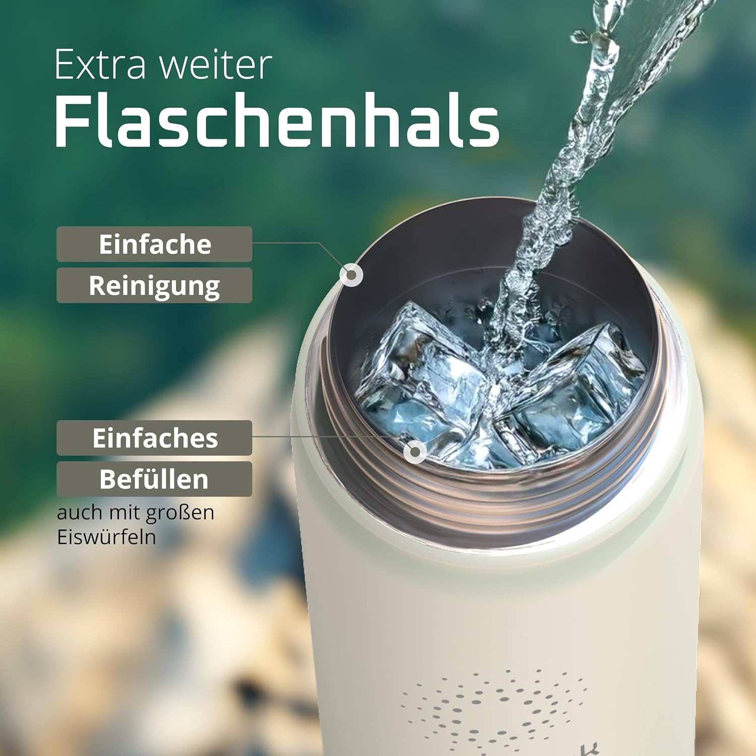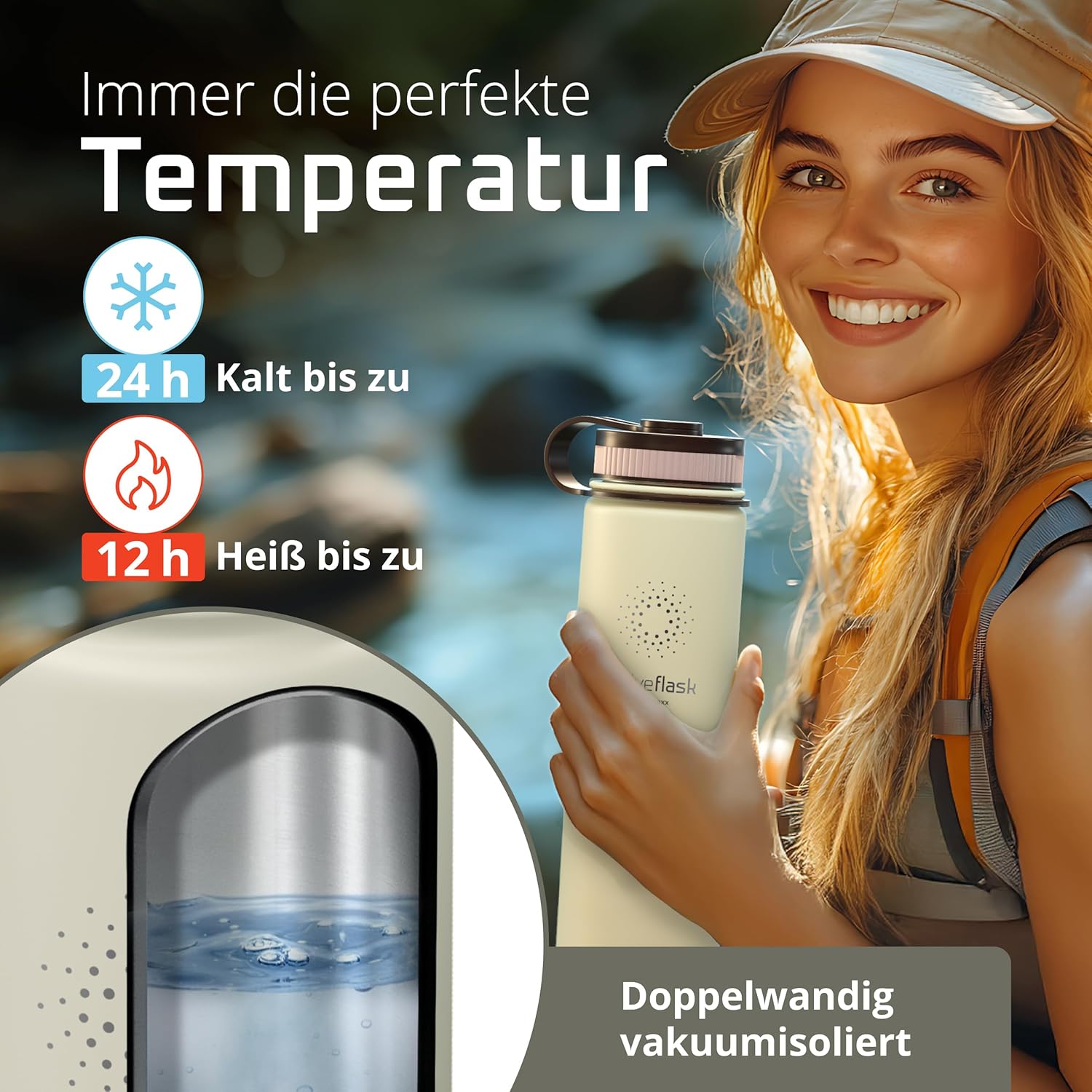 • Победител в теста: 12 часа топло и 25 часа студено | Вземете оригинала в обновен дизайн – двустенната вакуумно изолирана бутилка за пиене от неръждаема стомана с 3 различни капачки за ежедневна употреба, спорт и дейности на открито. Височина: 25 см, диаметър 9,3 см, обем: 950 мл. Тегло: 416 г. (*Настоящ победител в сравнението (категории „бутилки за пиене“ и „бутилки за пиене от неръждаема стомана“) atvergleich.org от 02/2017).