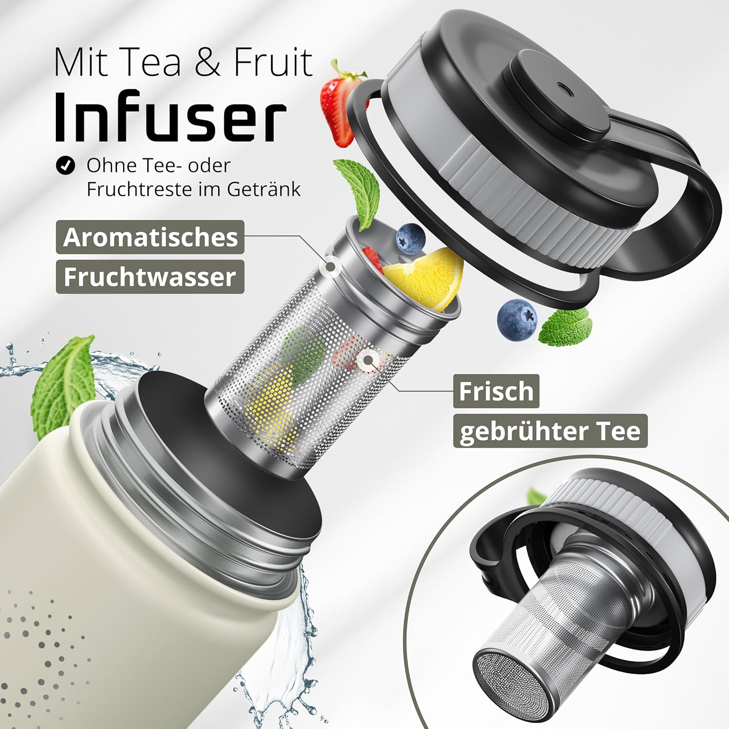 • Премиум инфузер, комплект за чай и плодове – Превърнете бутилката си за пиене в инфузер за чай или плодове за нула време и се насладете на прясно приготвен чай или пресни плодови шприцове навсякъде – без остатъци от чай или плодове да попаднат в напитката ви.