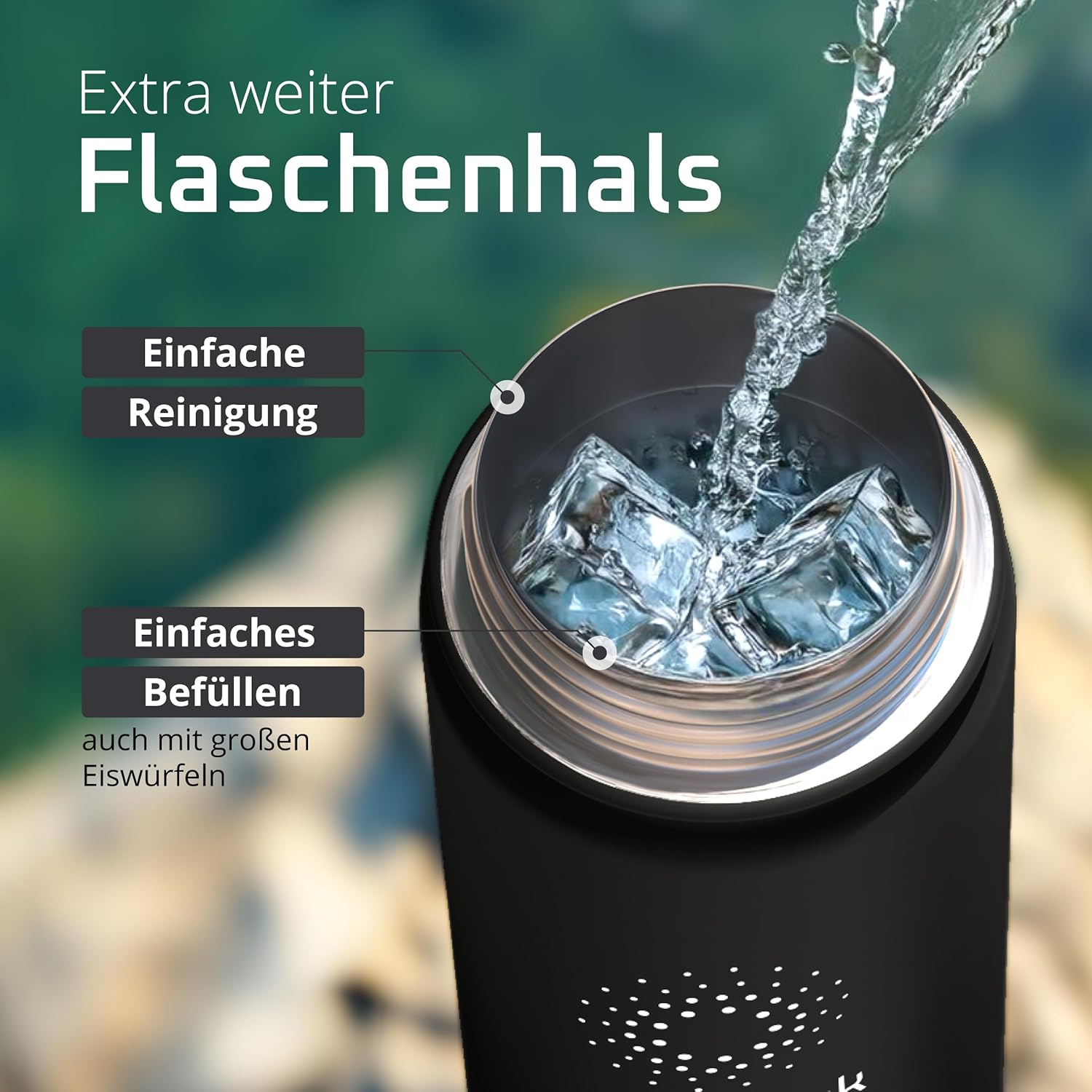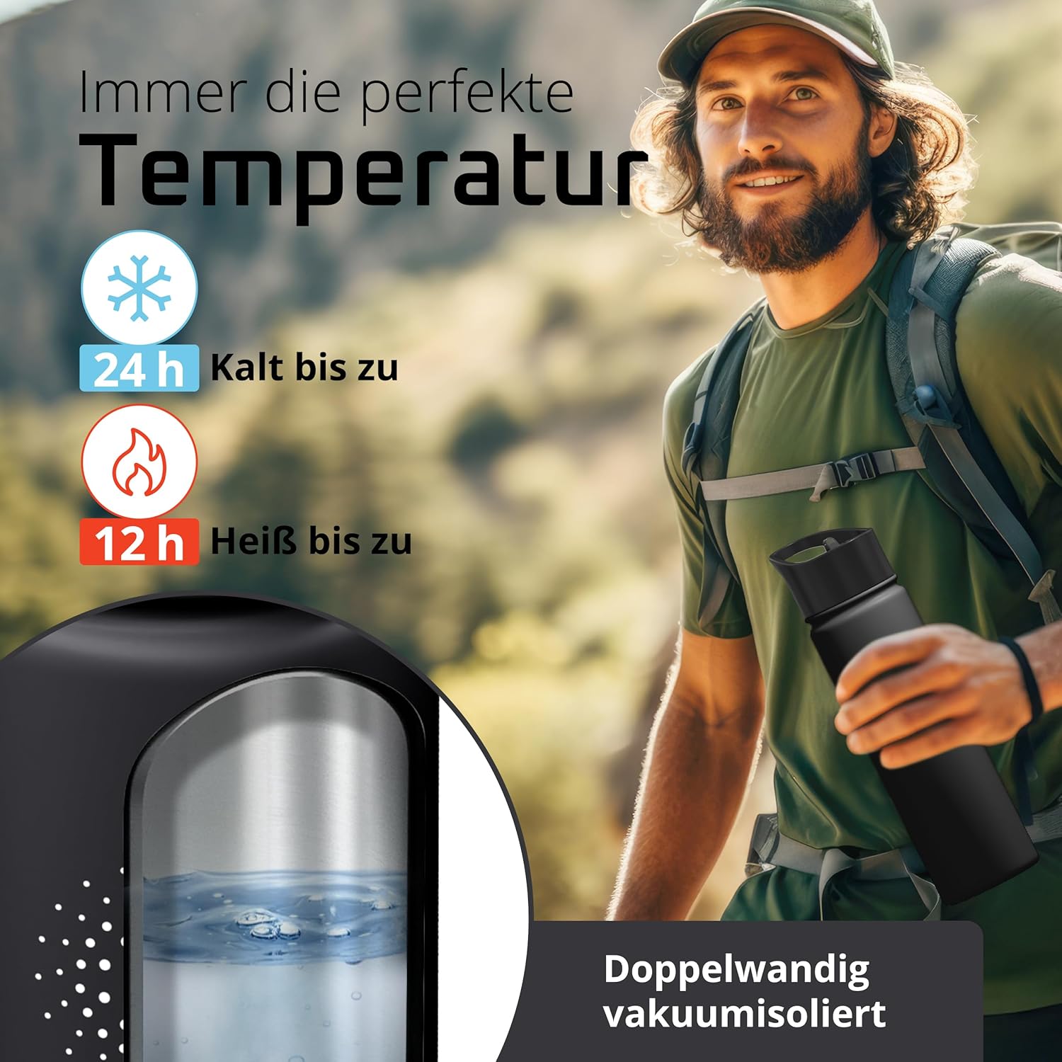 • Победител в теста: 12 часа топло и 25 часа студено | Вземете оригинала в обновен дизайн – двустенната вакуумно изолирана бутилка за пиене от неръждаема стомана с 3 различни капачки за ежедневна употреба, спорт и дейности на открито. Височина: 25 см, диаметър 9,3 см, обем: 950 мл. Тегло: 416 г. (*Настоящ победител в сравнението (категории „бутилки за пиене“ и „бутилки за пиене от неръждаема стомана“) atvergleich.org от 02/2017).