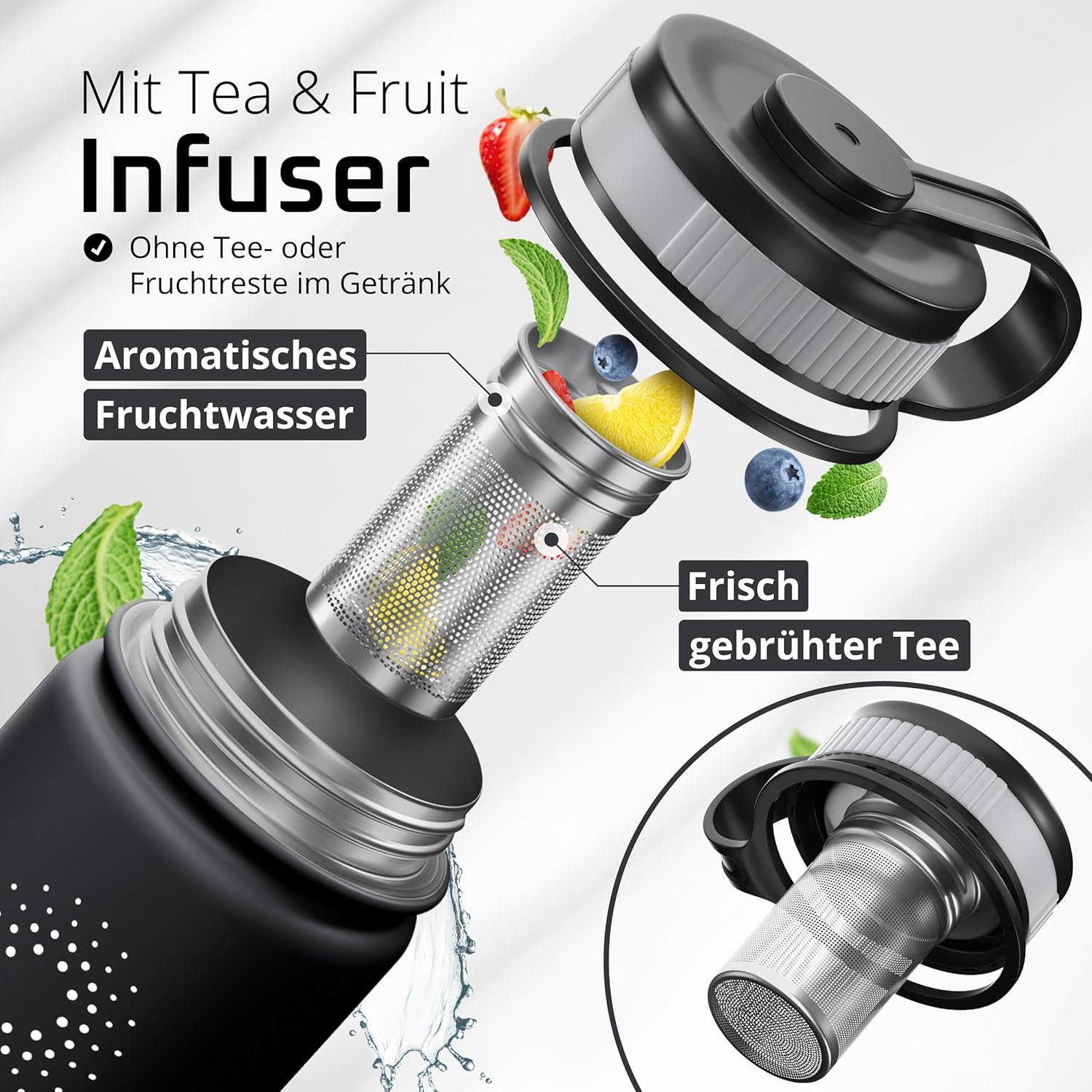 • Премиум инфузер, комплект за чай и плодове – Превърнете бутилката си за пиене в инфузер за чай или плодове за нула време и се насладете на прясно приготвен чай или пресни плодови шприцове навсякъде – без остатъци от чай или плодове да попаднат в напитката ви.