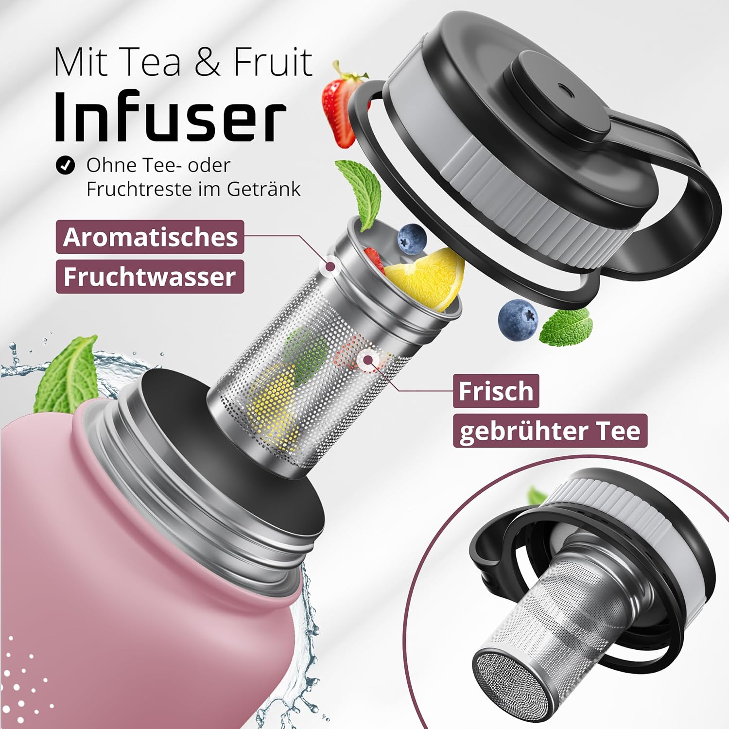 • Премиум инфузер, комплект за чай и плодове – Превърнете бутилката си за пиене в инфузер за чай или плодове за нула време и се насладете на прясно приготвен чай или пресни плодови шприцове навсякъде – без остатъци от чай или плодове да попаднат в напитката ви.