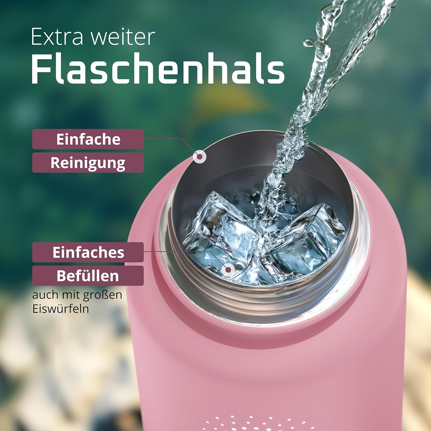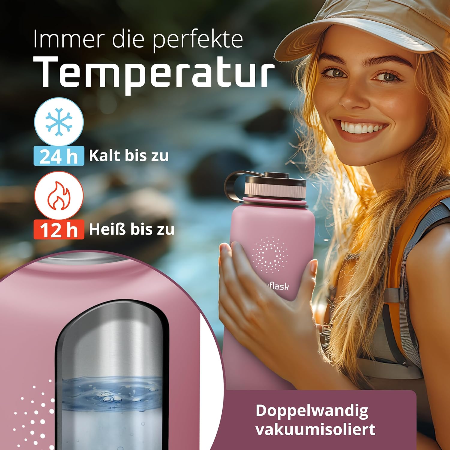 • Победител в теста: 12 часа топло и 25 часа студено | Вземете оригинала в обновен дизайн – двустенната вакуумно изолирана бутилка за пиене от неръждаема стомана с 3 различни капачки за ежедневна употреба, спорт и дейности на открито. Височина: 25 см, диаметър 9,3 см, обем: 950 мл. Тегло: 416 г. (*Настоящ победител в сравнението (категории „бутилки за пиене“ и „бутилки за пиене от неръждаема стомана“) atvergleich.org от 02/2017).