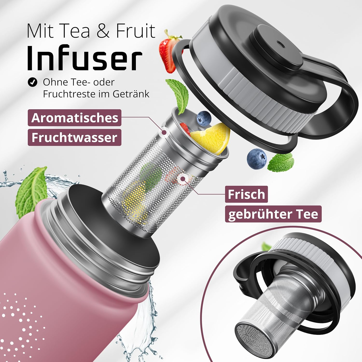 • Премиум инфузер, комплект за чай и плодове – Превърнете бутилката си за пиене в инфузер за чай или плодове за нула време и се насладете на прясно приготвен чай или пресни плодови шприцове навсякъде – без остатъци от чай или плодове да попаднат в напитката ви.