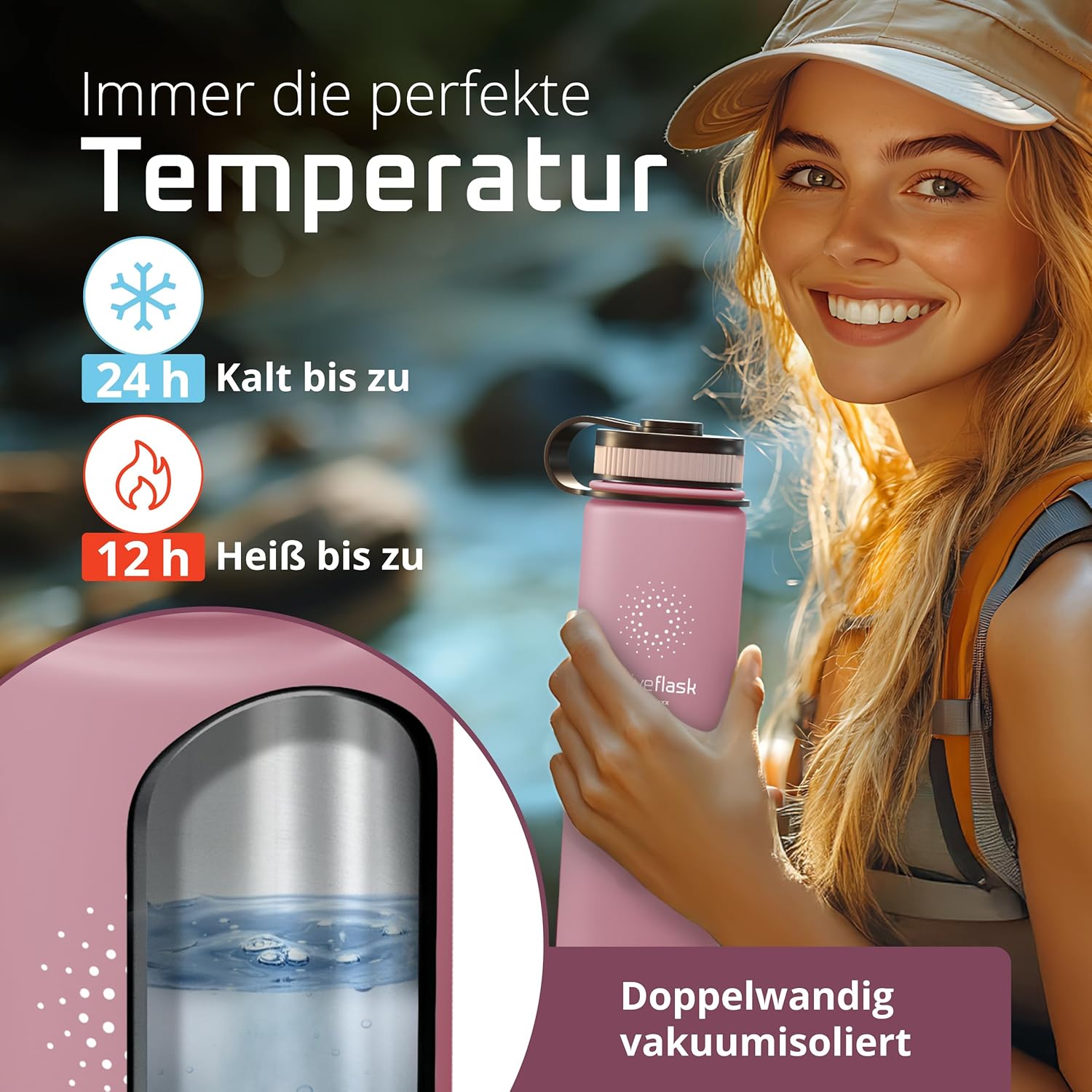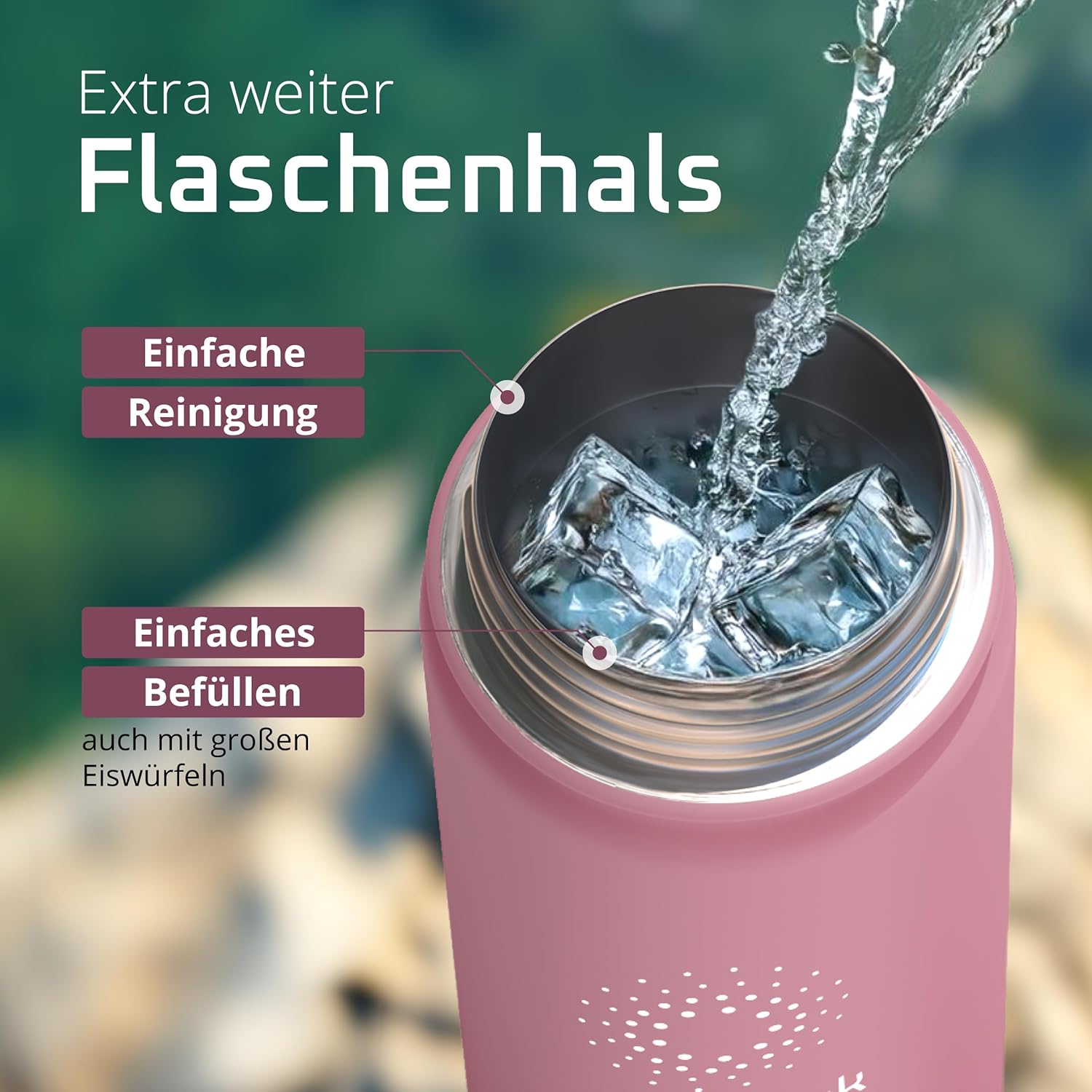 • Победител в теста: 12 часа топло и 25 часа студено | Вземете оригинала в обновен дизайн – двустенната вакуумно изолирана бутилка за пиене от неръждаема стомана с 3 различни капачки за ежедневна употреба, спорт и дейности на открито. Височина: 25 см, диаметър 9,3 см, обем: 950 мл. Тегло: 416 г. (*Настоящ победител в сравнението (категории „бутилки за пиене“ и „бутилки за пиене от неръждаема стомана“) atvergleich.org от 02/2017).